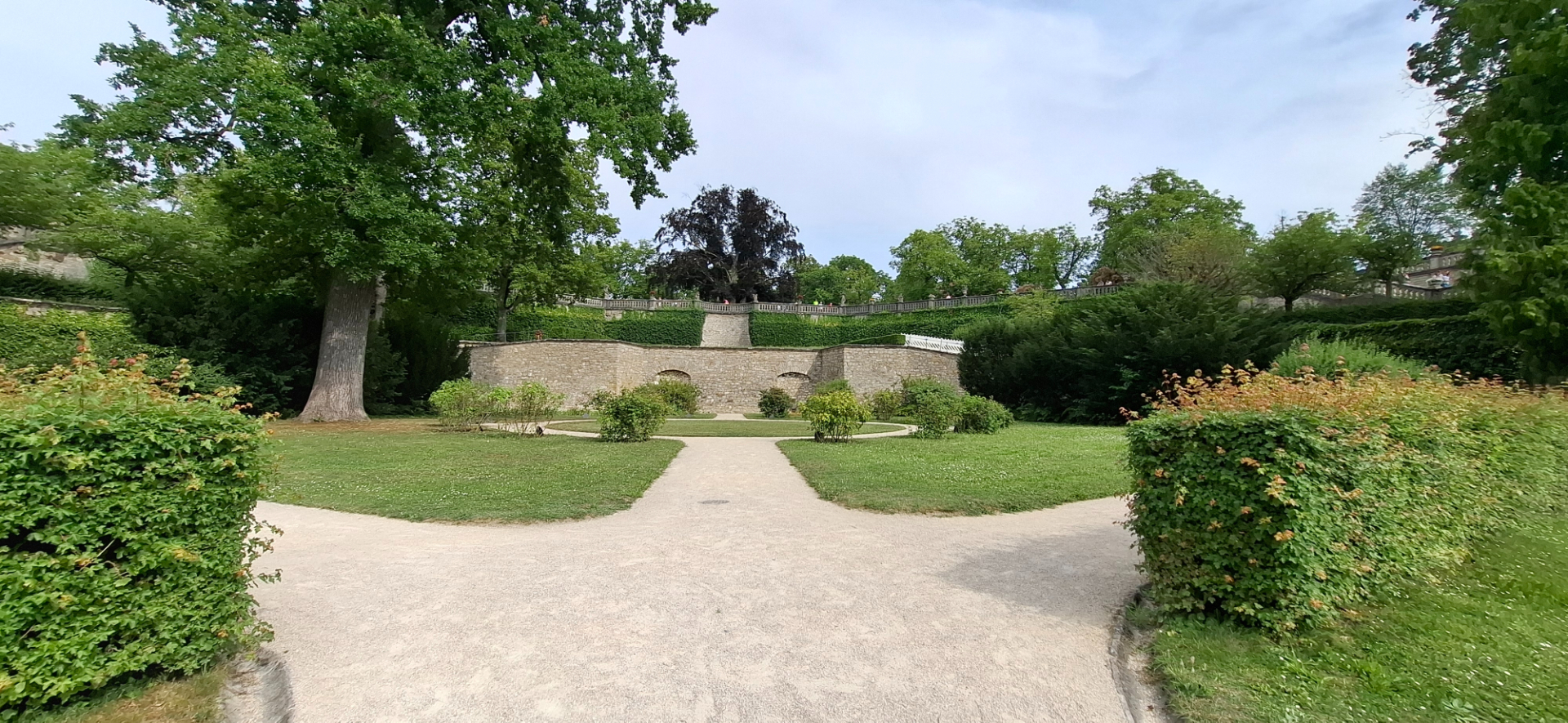 Южный сад идет по всей длине фасада дворца. Там, где находились покои князя-епископа и покои для его гостей, например, императоры Священной Римской империи. Потому нужен был красивый вид из окон.