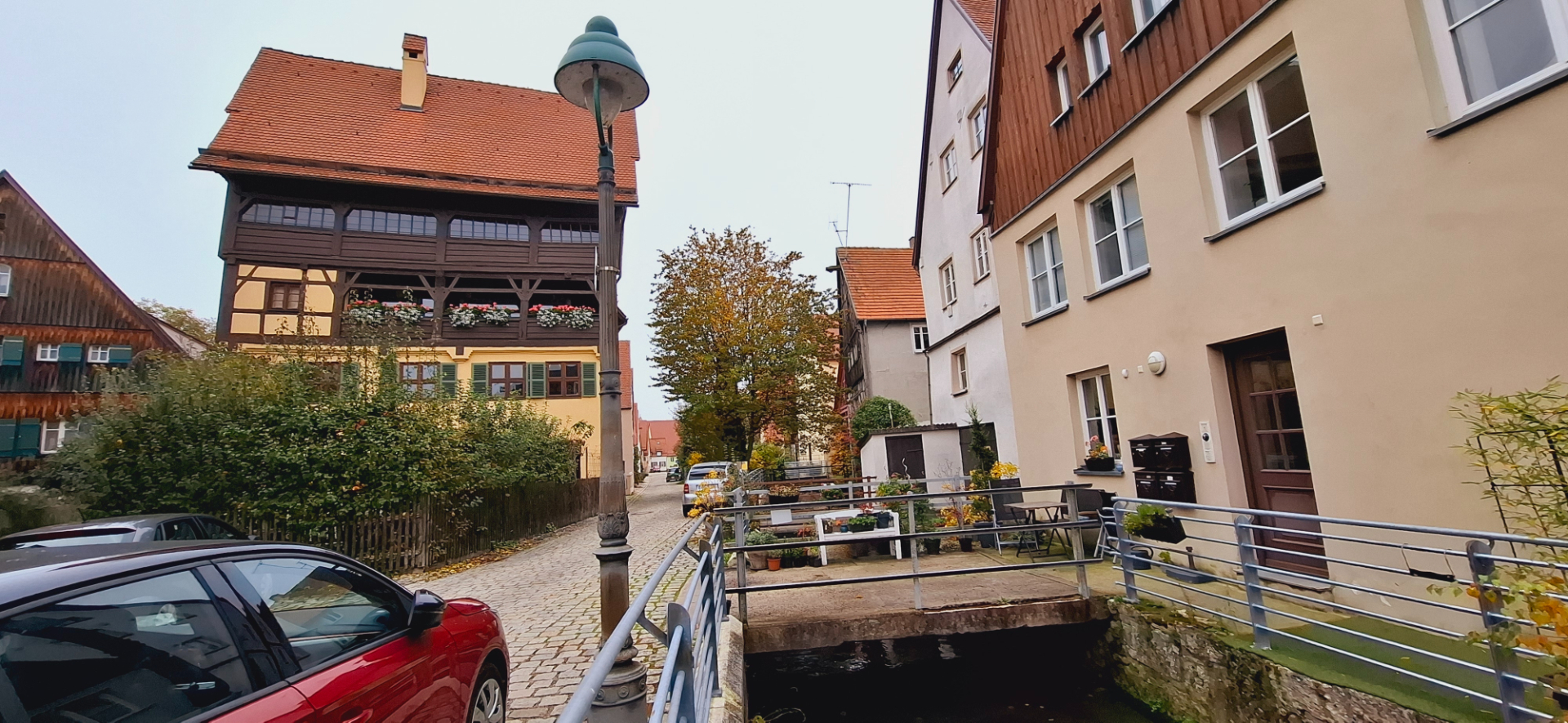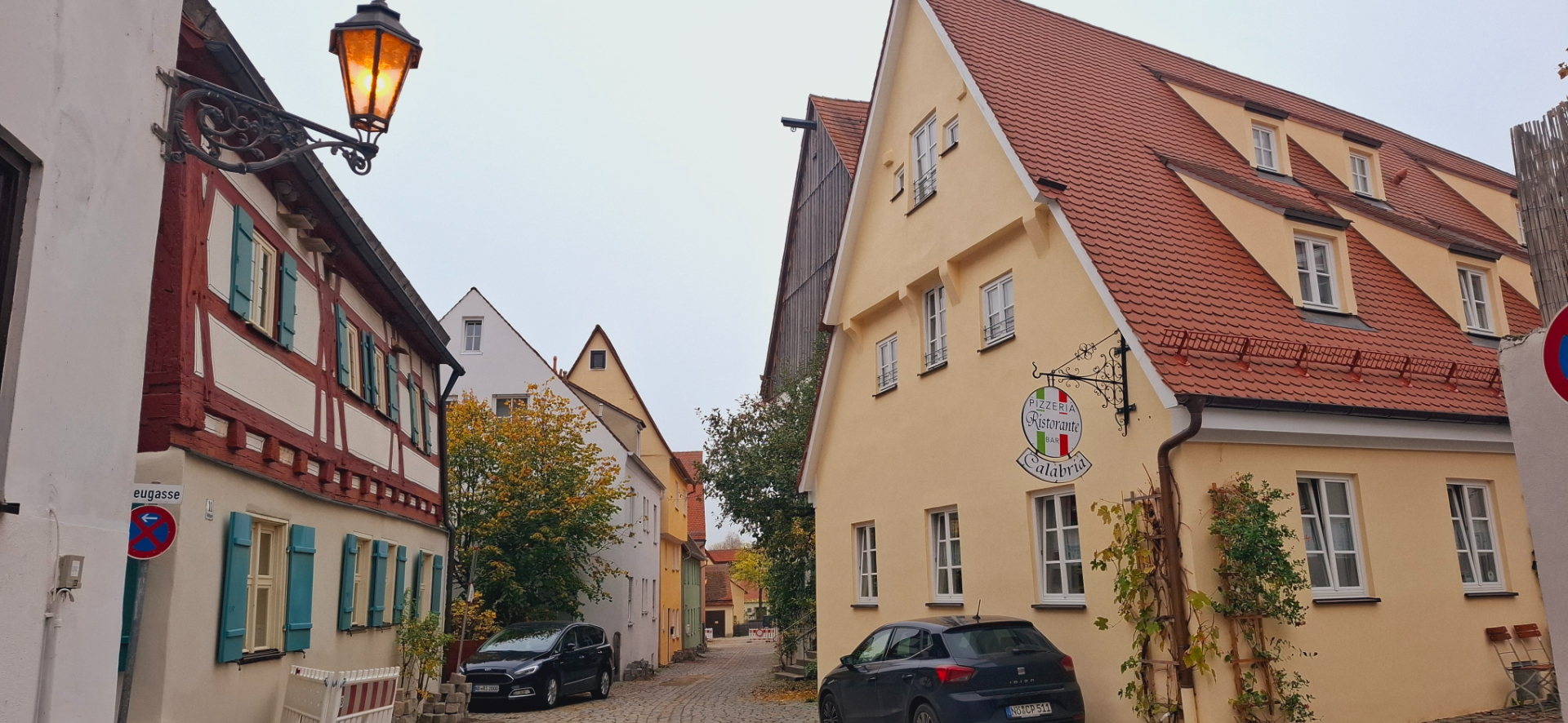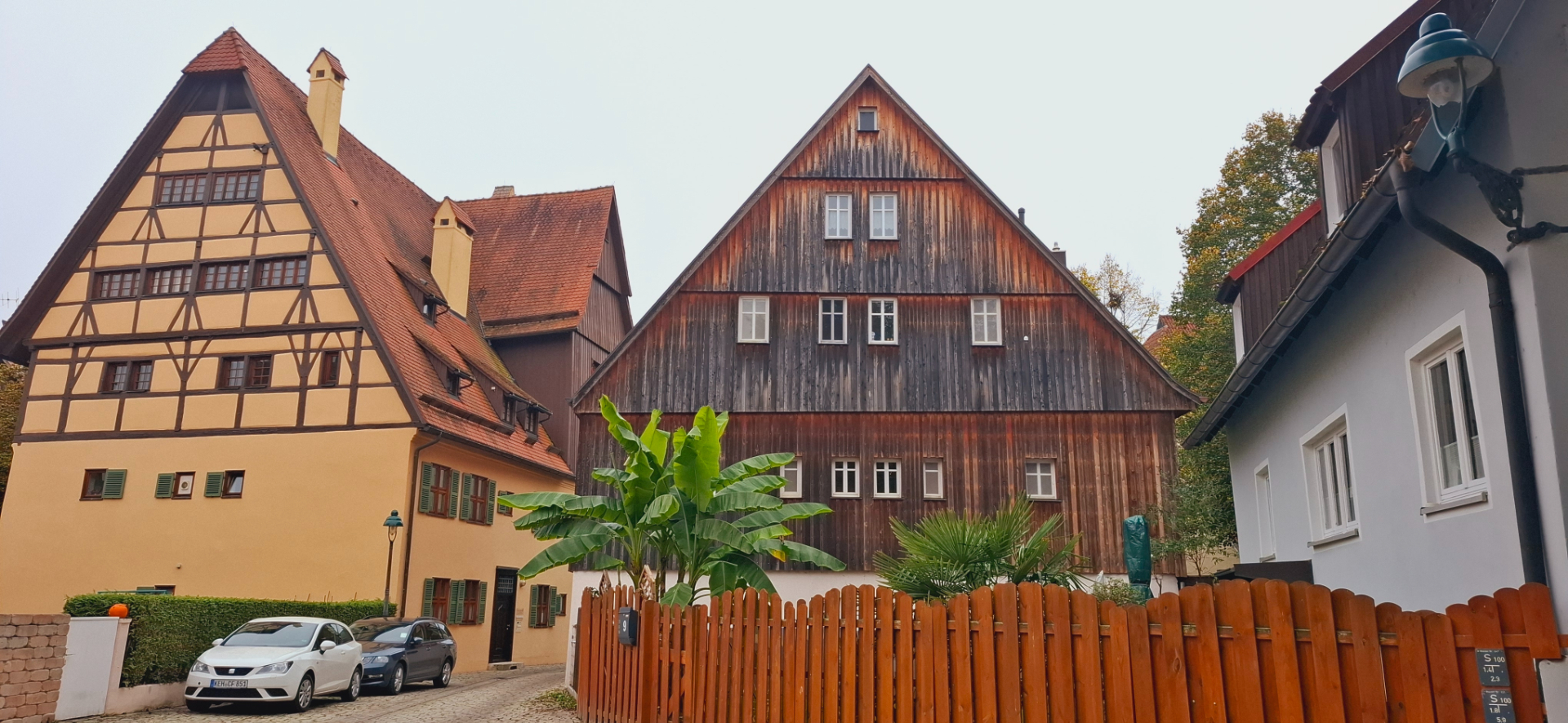 Туманным утром фонари еще горят, их свет придает загадочности всему вокруг. Целые кварталы вахверковых домиков, как из сказки в лесной тишине…-пардон, городской тишине. Сейчас откроется дверка, выйдет Белоснежка с ведрами по воду. За ней выкатятся гномики и лесные зверушки. Ой, так и заблудиться, а скорее всего, голову потерять недолго. Твердо говорю себе - это город.