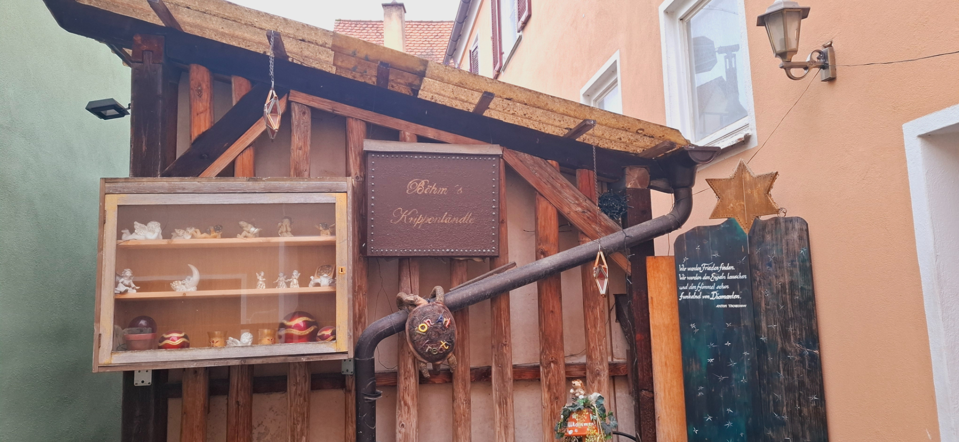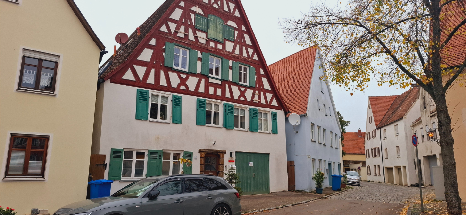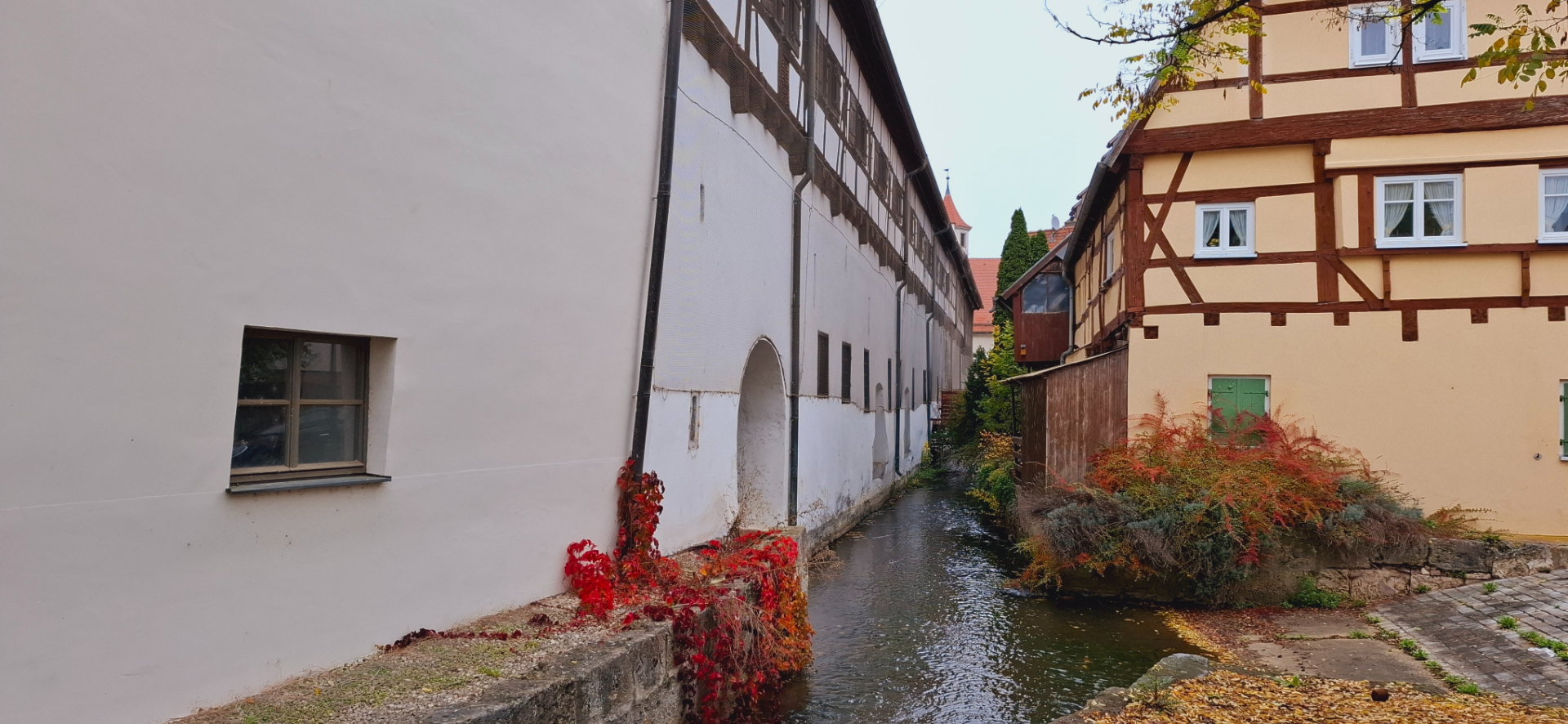 Туманным утром фонари еще горят, их свет придает загадочности всему вокруг. Целые кварталы вахверковых домиков, как из сказки в лесной тишине…-пардон, городской тишине. Сейчас откроется дверка, выйдет Белоснежка с ведрами по воду. За ней выкатятся гномики и лесные зверушки. Ой, так и заблудиться, а скорее всего, голову потерять недолго. Твердо говорю себе - это город.