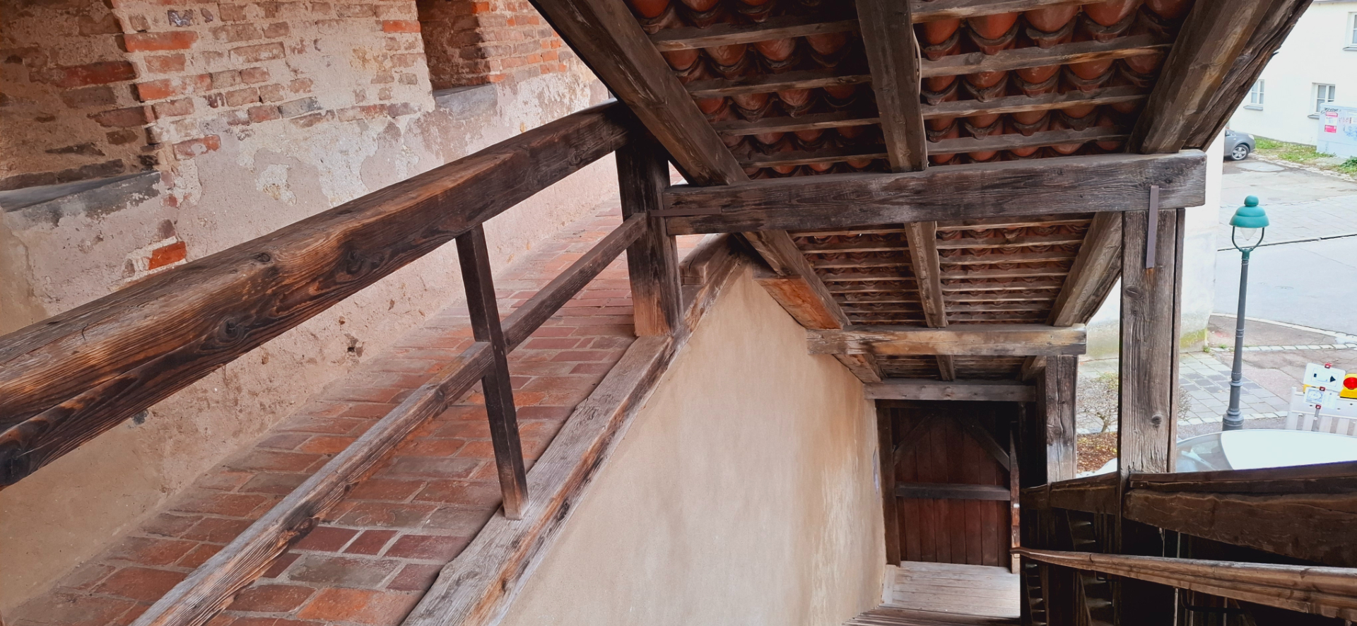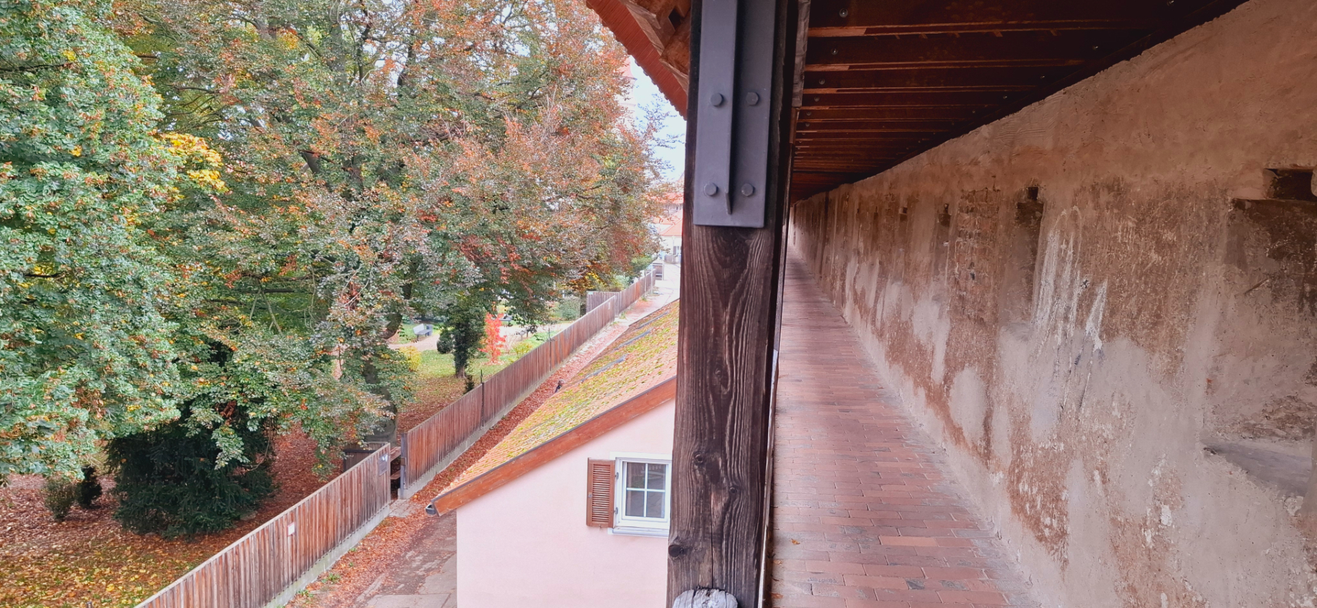 Нёрдлинген в Швабии, единственный среди старых городов с полностью сохранившимся крытым проходом по крепостным стенам. Высокая стена, сохранившаяся до современности, была возведена в 1327 году. Подобные оборонительные сооружения имели практически все средневековые города, только потом их снесли из-за ненужности и опасной ветхости.