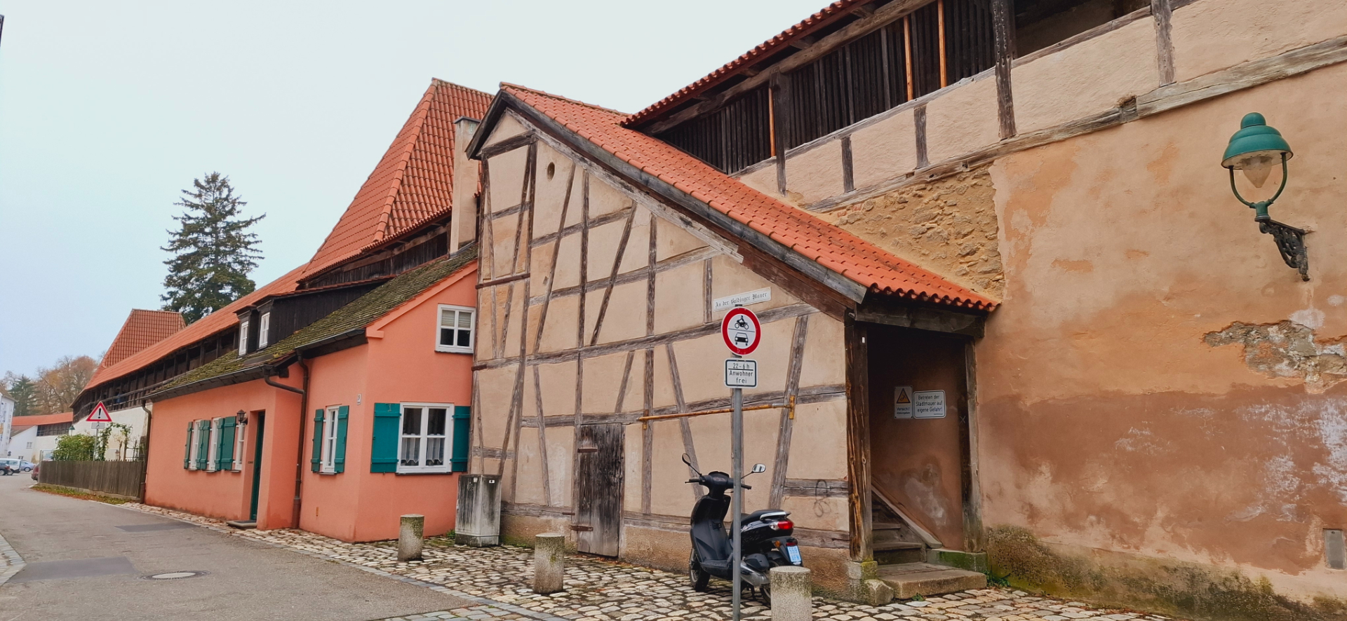 В отличие от Ротенбурга-над-Таубером, домики в Нёрдлинген образуют почти внутренне кольцо из «прилепившихся» строений, как и стены города. Они идут практически гуськом друг за другом. В дальнейшем походе по городу, разглядела и пустующие места под стенами. Изначально эти домики строились для определённых категорий горожан, таких как стражники и члены военной дружины, отвечавших за безопасность на оборонных стенах. Некоторые из таких домов предоставлялись ветеранам или бывшим солдатам, а так же ремесленникам и рабочим, которые обслуживали стены и ворота - плотникам, каменщикам, кузнецам. Разрешали селиться тут и очень бедным вдовам, малоимущим жителям, которые не могли позволить себе жилье в центре города. Существовало условие, что жители этих домов должны были денно и нощно следить за состоянием стен и сообщать о любых изменениях. За проживание брали маленькую плату или вообще бесплатно давали домик.