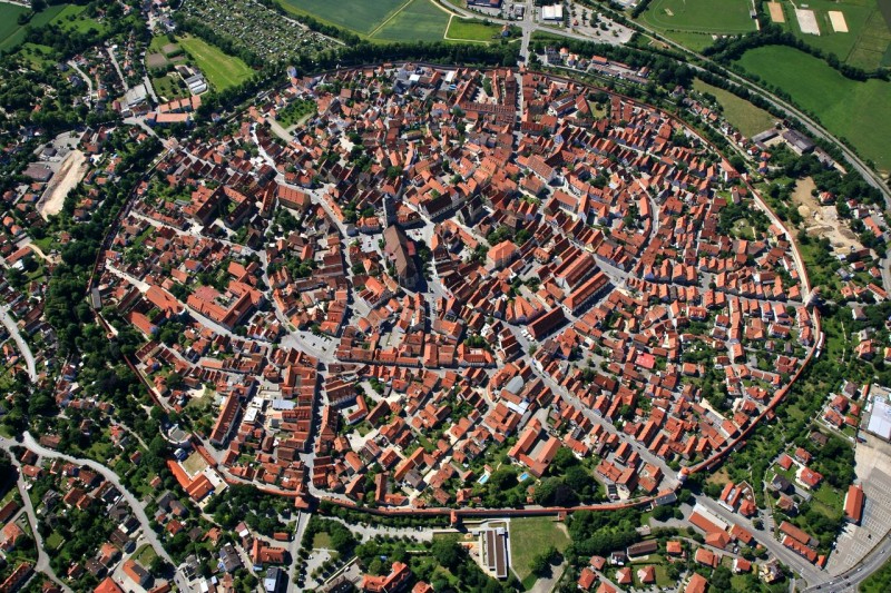 Город рос и развивался буквально в чаше дна метеоритного кратера Нёрдлинген Рис. Старый Альтштадт внутри стен небольшой, почти правильный круг образует диаметром 1 км. А что еще напоминает «круглый город»? Кому что, мне круглое окно-вход в заколдованную сказку, мир гномов.