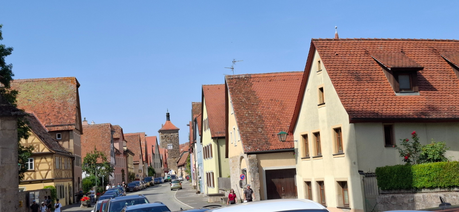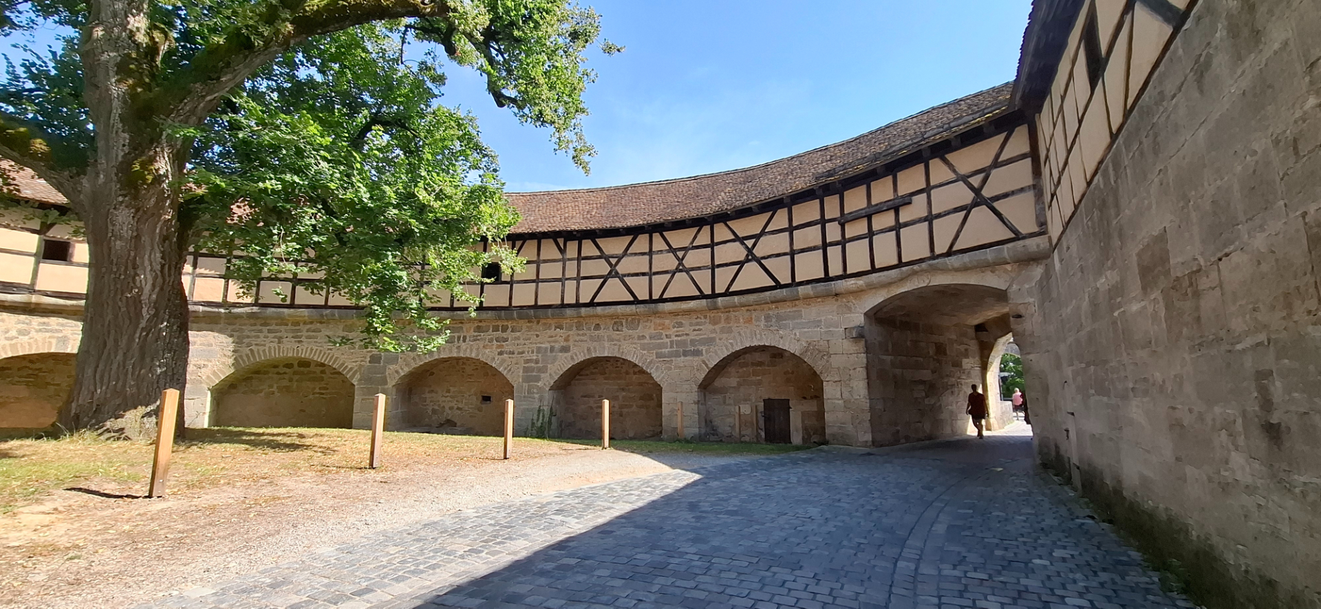 Слева башня Siebersturm 1204 г., она была воротами второй городской стены. Справа ворота «Kobolzeller Tor» с бастионом 1204 г., защищавшие вход в город снизу, от долины реки Таубер. Кобальцелльские ворота ведут вниз по дороге к старинному двухэтажному мосту через Таубер. Он возведен в XIV веке и похож на римский виадук. Подобный двухэтажный каменный мост редко теперь можно встретить.