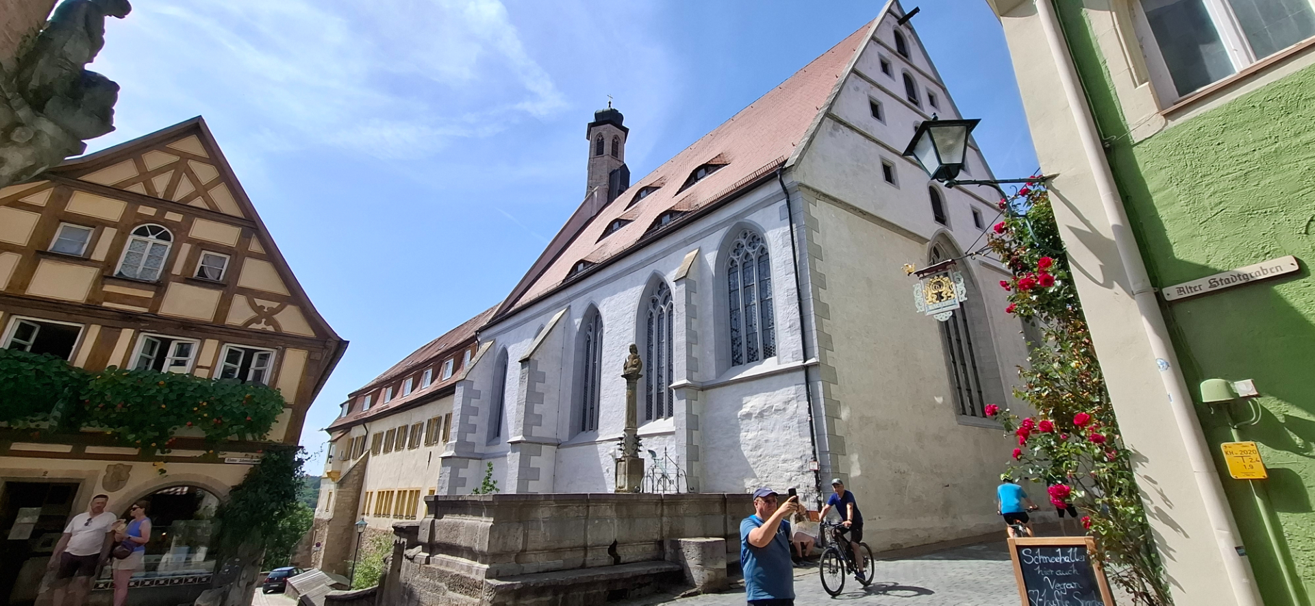 По пути церковь Св.Иакова служит ориентиром, ее стена слева на последнем фото. Построена в 1280 году, и является одним из старейших костелов в Ротенбурге. Внутренний интерьер храма сдержанный.