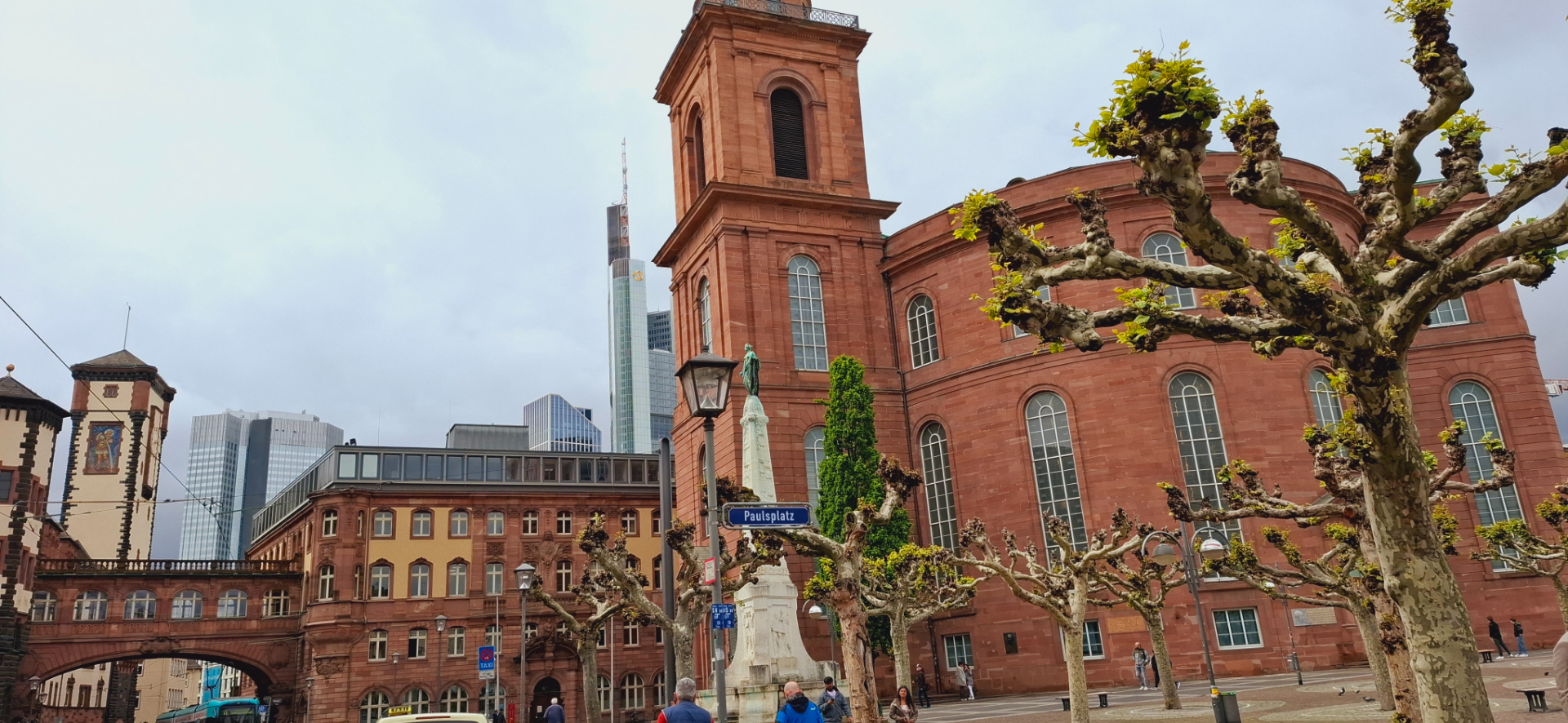 По другую сторону площади от трамвайных путей стоит круглый храм Св. Павла, построенный в 1789 году, как кирха. Храм появился на месте Barfusserkirche («Церкви Босоногих»), в школу при которой ходил в детстве И. В.Гете. В1848-1849 годах церковь сыграла важную роль в политической жизни Германии. Здесь в это время заседал первый германский парламент, подготовивший конституцию объединенной Германии. 18 марта 1944 года церковь была разрушена до основания, в 1948 году отстроена заново, как значимый политический символ. На её стенах сегодня множество мемориальных досок. Сейчас службы в церкви не проводятся, здание служит «Домом всех немцев», проводят различные мероприятия, такие как вручение премии Гёте.