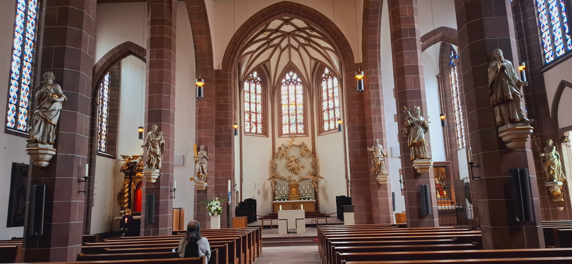 Внутри на удивление небольшой крестообразный зал. Впечатляет алтарями готического периода, и, говорят, своей акустикой. Здесь находится один из крупнейших органов в Германии - более 8500 труб, а также один из крупнейших в стране колоколов – Глориоза.