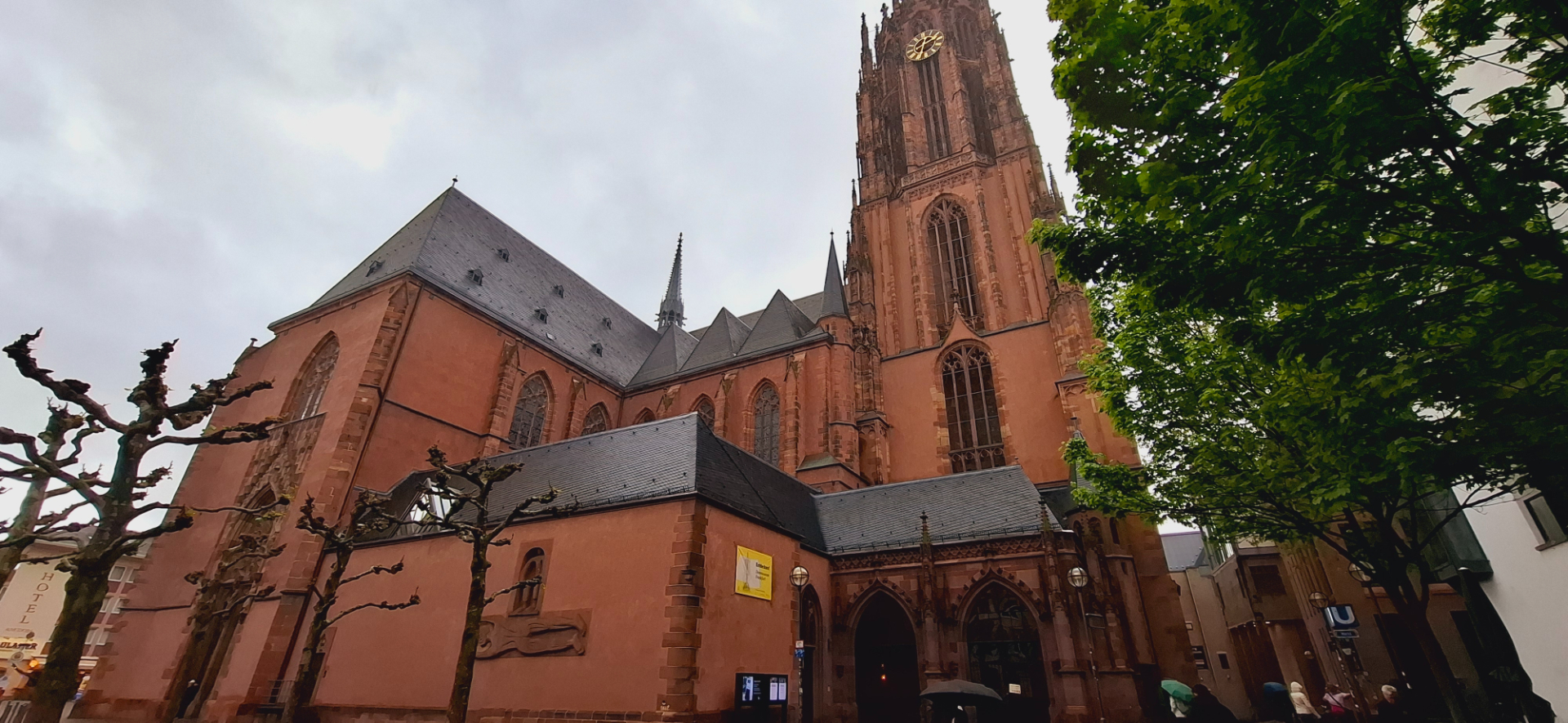 Собор Св. Варфоломея чуть в сторону от площади находится. Собором называть не правильно, так как должна быть «кафедрой» епископа, но собственного епископа во Франкфурте-на-Майне никогда не было. Однако, по колоссальной значимости сего объекта с XVIII века, в городе за ним закрепилось название Собор - Dom. В далеком VIII веке город являлся столицей восточнофранкского королевства, храм троился он 300 лет, в XIII – XV веках. Найти можно по высокой 96-метровой ажурной башне. Потому эта башня при небольшом здание - самое примечательное внешний элемент собора.