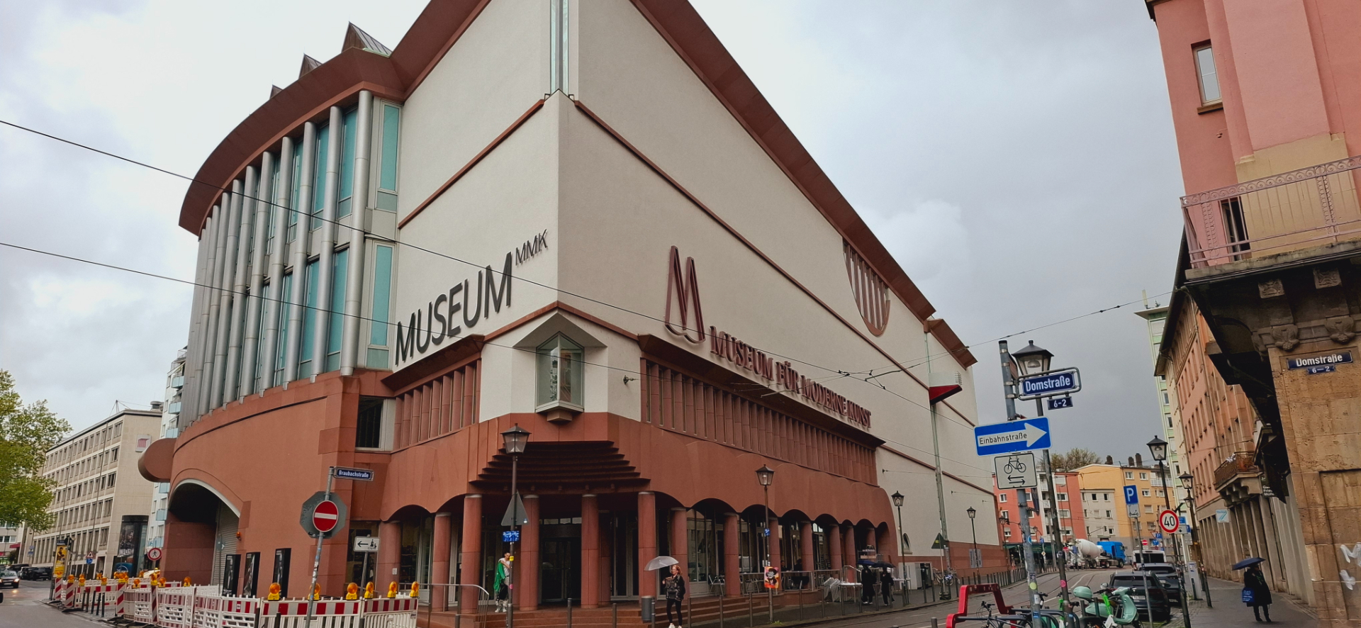 На углу, если прямо от башни собора идти, здание MMK - Museum für Moderne Kunst, музей современного искусства. Построен в 1987-1991 годах по проекту знаменитого американского архитектора-авангардиста Ричарда Мейера.