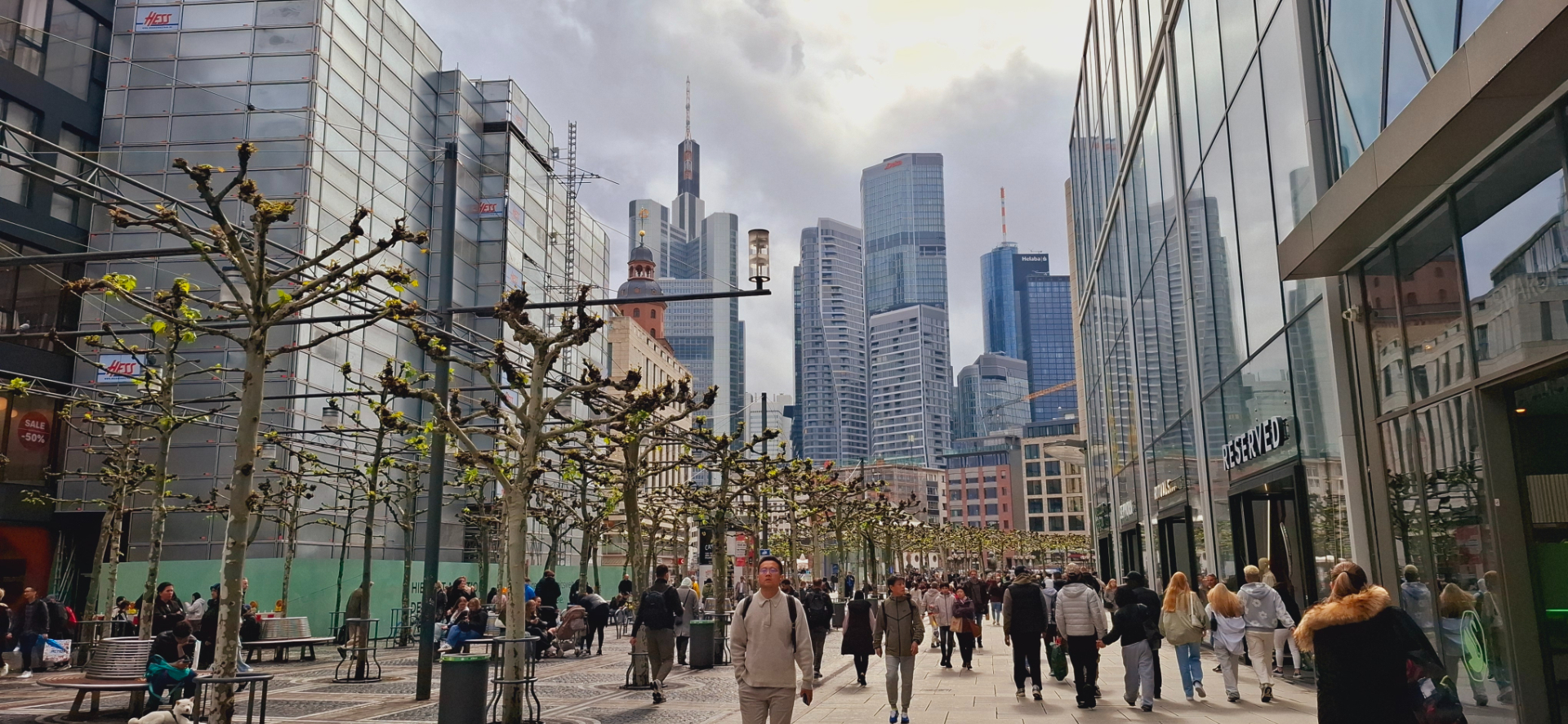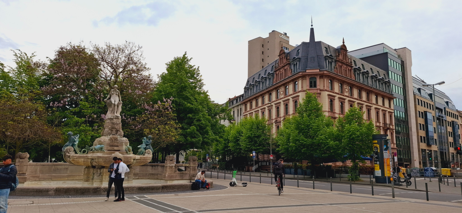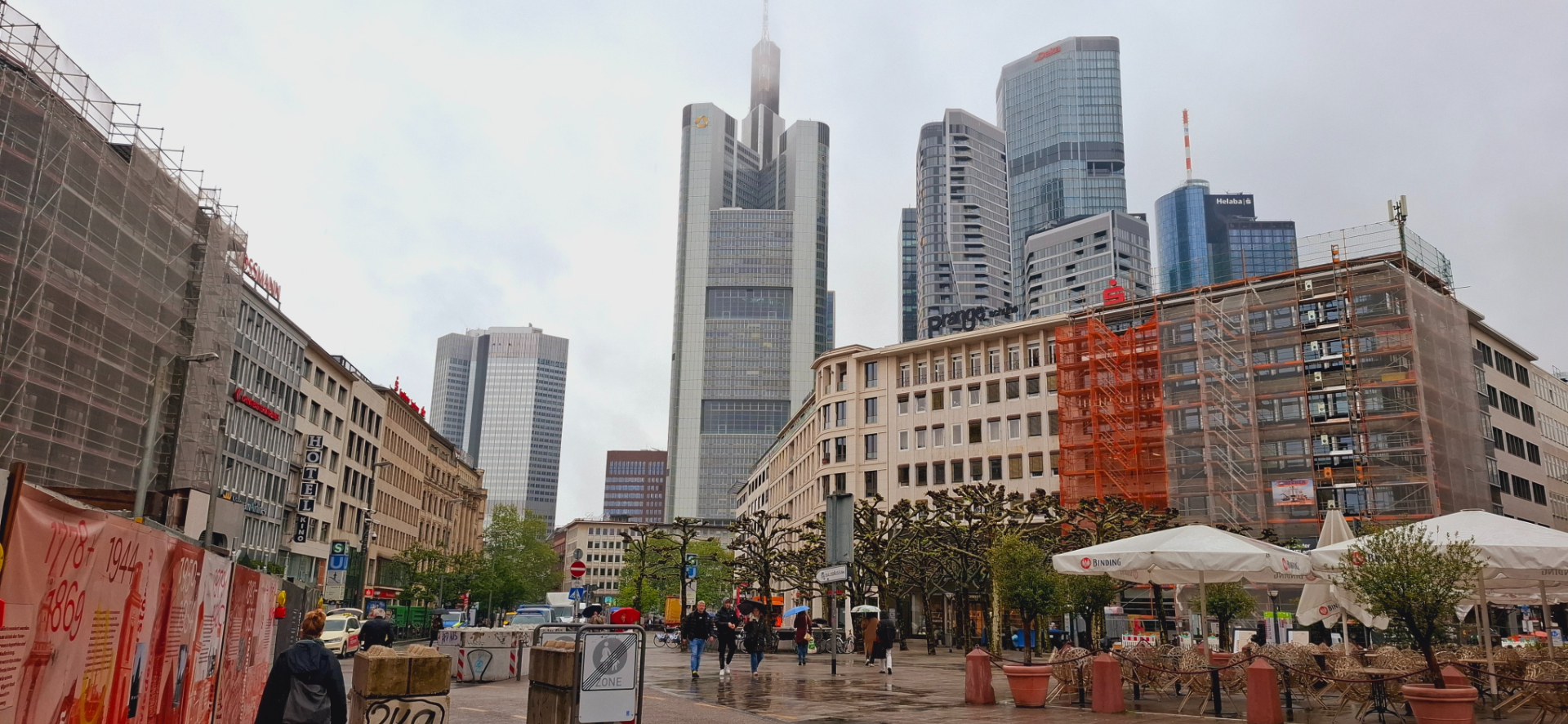 Спустились и вышли к знаменитому памятнику евро, что еще сказать про букву в окружении звездочек Евросоюза на Вилли-Брандт-плац. А можно еще кое-что😊. Официальное название «Евроскульптур», стоит на этом месте с конца 1990-х годов. И этот «евро» не единственный в городе: одна из копий установлена в аэропорту Франкфурта, другая - на площади перед зданием Европейского центрального банка. Деньги только и могут быть символом финансовой столицы.