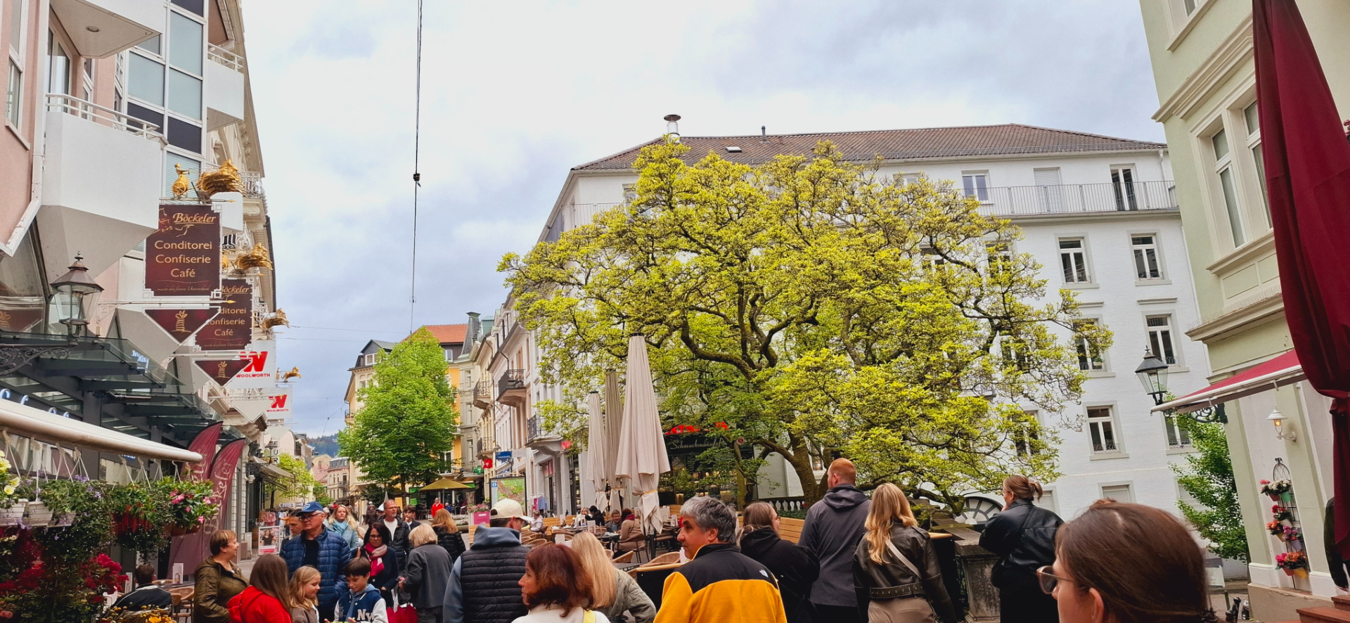 При пересечении потоков людей, снова и снова слышишь родной, могучий. Потому и город кажется каким-то знакомым. Сначала в детстве узнали о нем из произведений русских писателей, потом в новостях нет-нет да промелькнут его изображения. Но никогда не мучились догадками, как там в Баден-Бадене на самом деле? Ну, а теперь мы сами сподобились тут побывать и что... Городок не имеет какой-то яркой черты, чтобы по одной картинке его сразу узнавать. Подобные улочки и дома с завитушками есть по всей Европе. Однако, когда находишься внутри «картинки», то окружающие здания, красоты создают именно Баден.