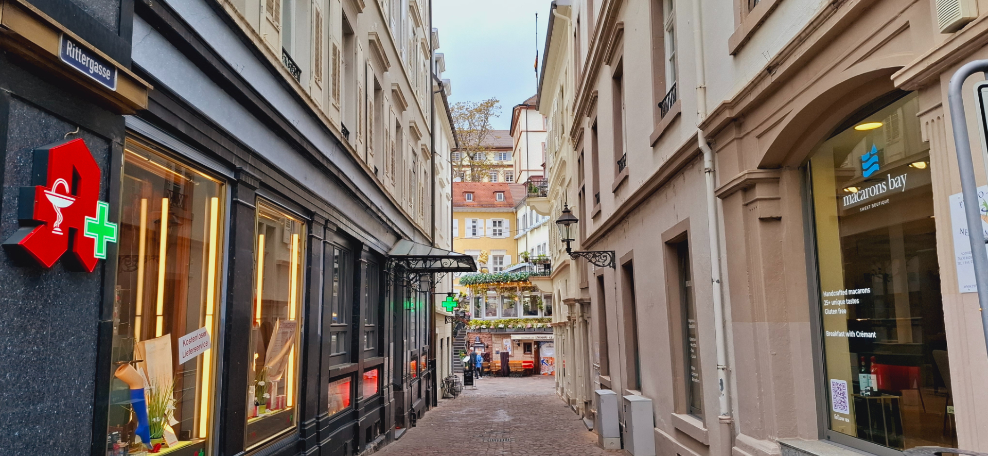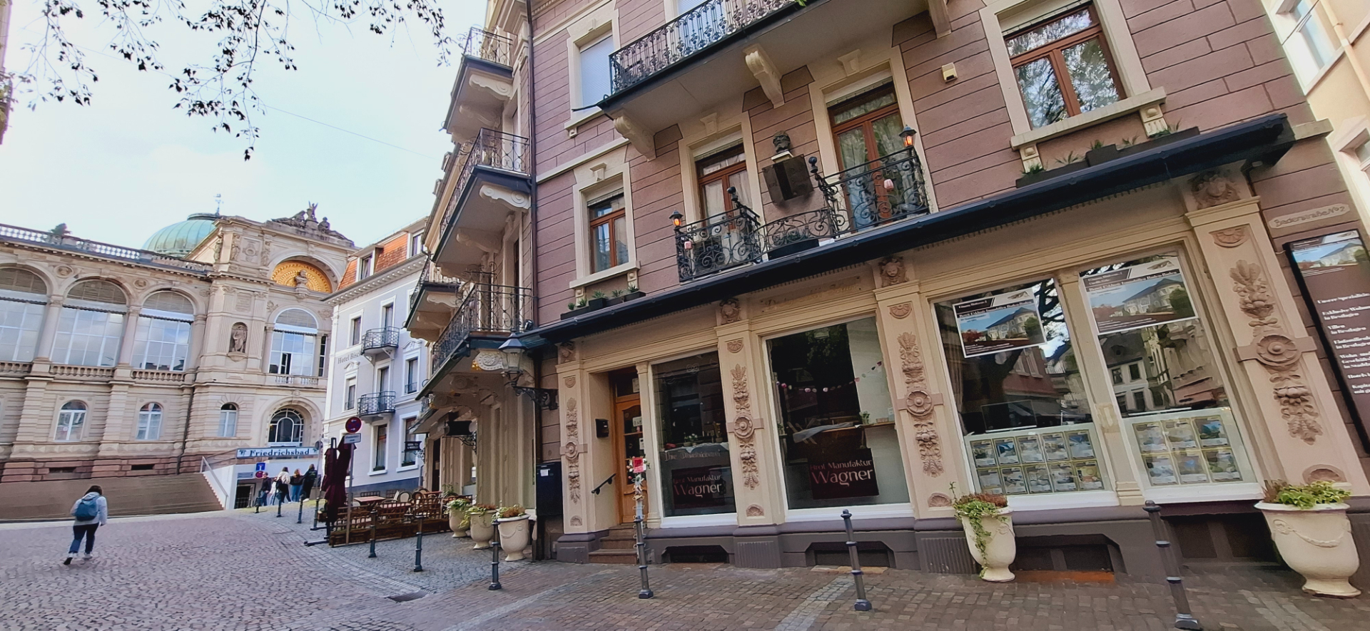 Недалеко от театра в два ряда местный пассаж. В павильоне номер 8, где сейчас торгуют галстуками «От Версаче», в старину находилась табачная лавка. В тот момент в Германии не было ни одной табачной фабрики. Владелец лавки Генрих Райнбольд, обратил внимание, что русские не покупают папиросы и табак у него, приносят свои. Он начал завозить табак и табачную продукцию из России, а позже открыл первую в Германии сигаретную фабрику. Его дело продолжил его зять - Август Бачари, построив крупное предприятие в Баден-Бадене.