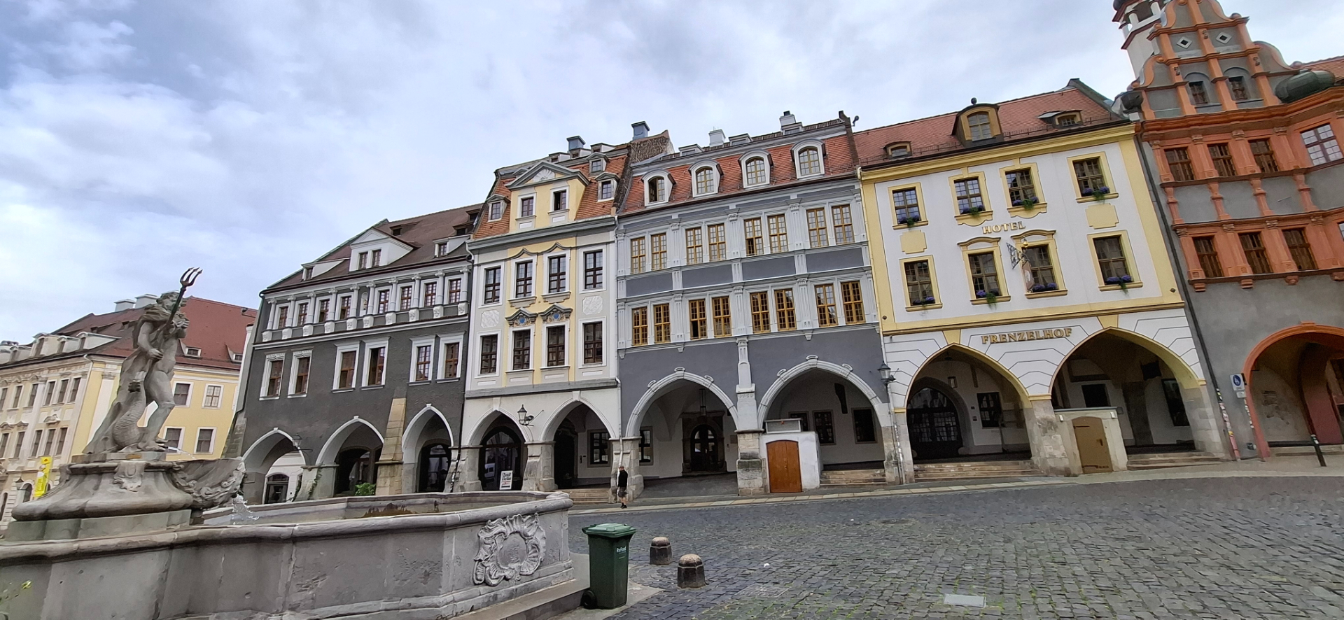 Обермаркт - старейшая площадь Гёрлица, и как организованное пространство с окружающими домами, сформировалась к XIII веку. За столетия случались разрушения, пожары, поэтому дома на ней теперь не слишком древние, в основном века XVIII. Но с интересной историей.