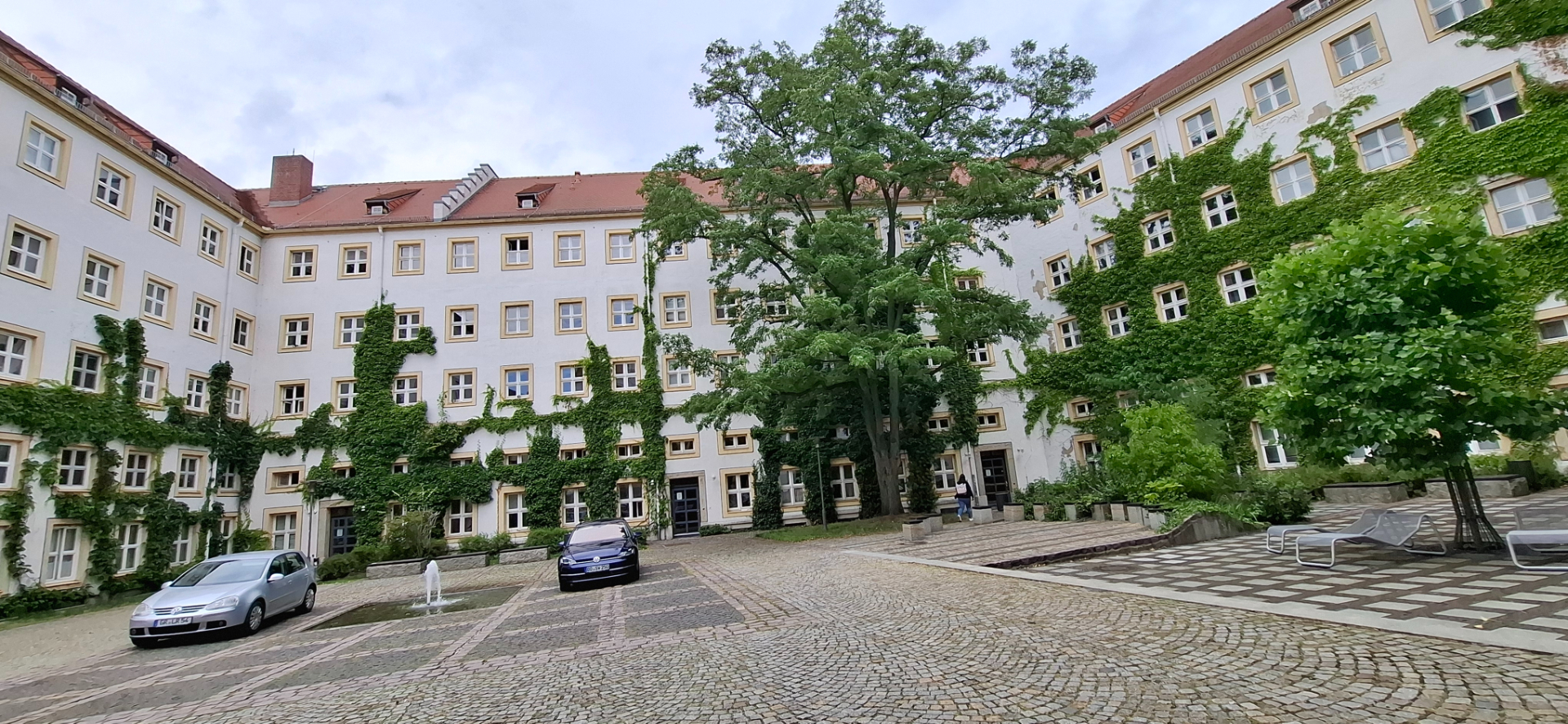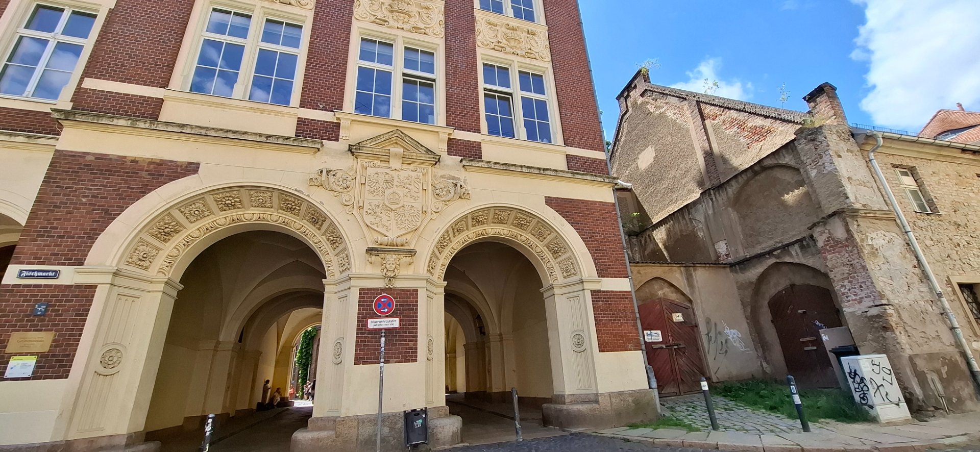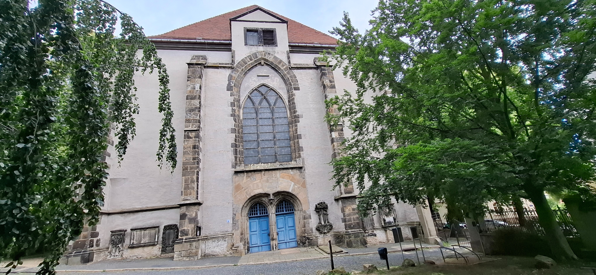 На том месте, где сейчас стоит собор в 1071 году стояла крепость «Горелиц», откуда и пошел город. Собор строился долго, закончили через 250 лет. И это место населяли славяне. Рядом с храмом здание «Вайдхаус», самое старое светское здание Гёрлица 12-ого века и первое здание , отреставрированное на деньги того самого, пожелавшего остаться неизвестным мецената. Сначала Вайдхаус использовался для проживания рабочих, строивших замок. За 800 лет тут находились: пивоварня, школа, пожарная часть, склад для хранения зерна и, наконец, склад вайды, в честь которой дом и получил своё нынешнее название. Вайда - растение, из которого получали синий краситель в старые века. С 1993 года в здании находится городская резиденция Немецкого фонда защиты памятников.