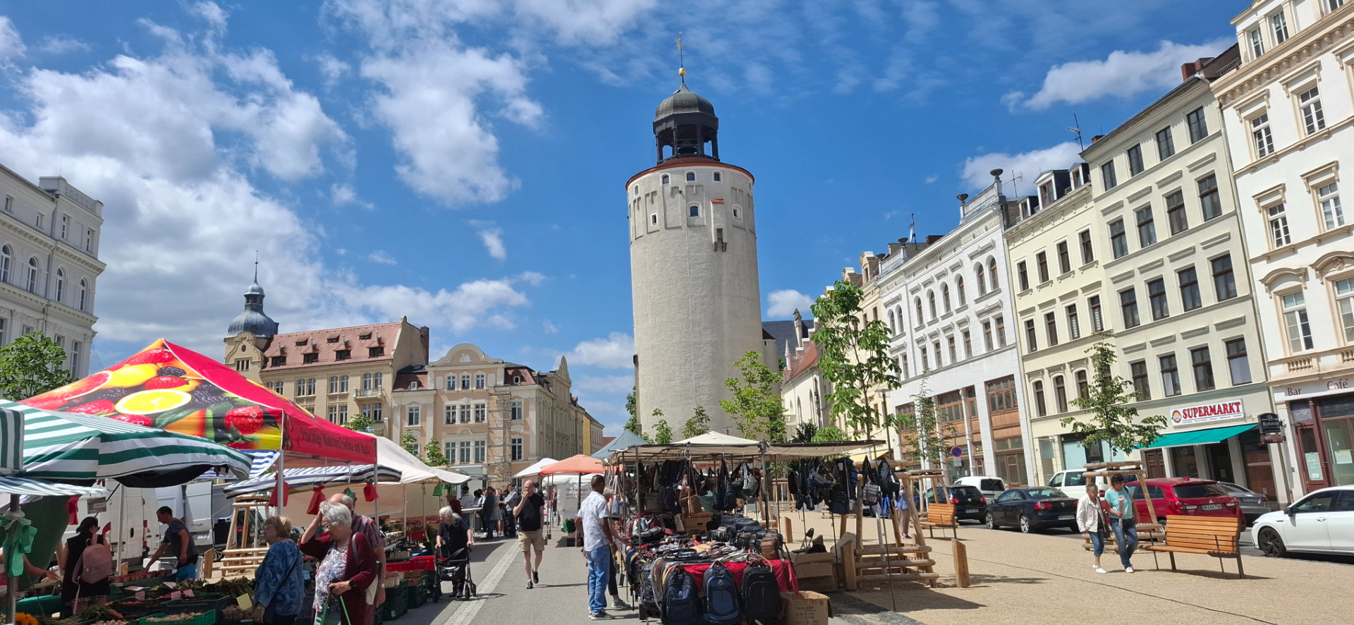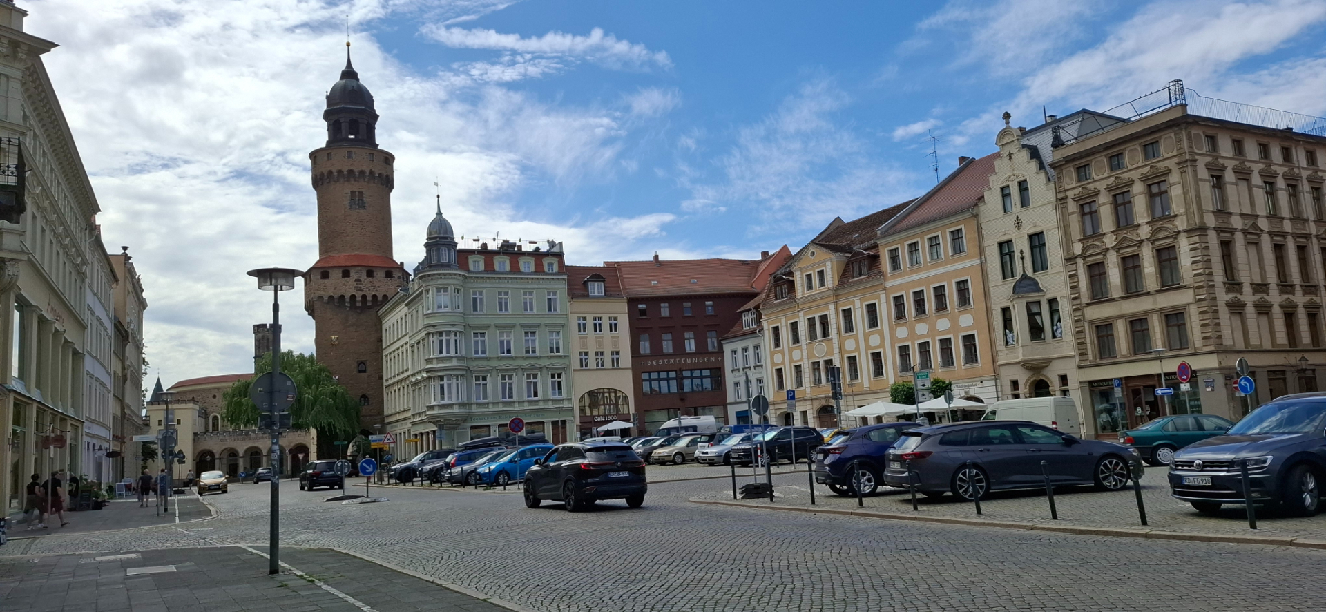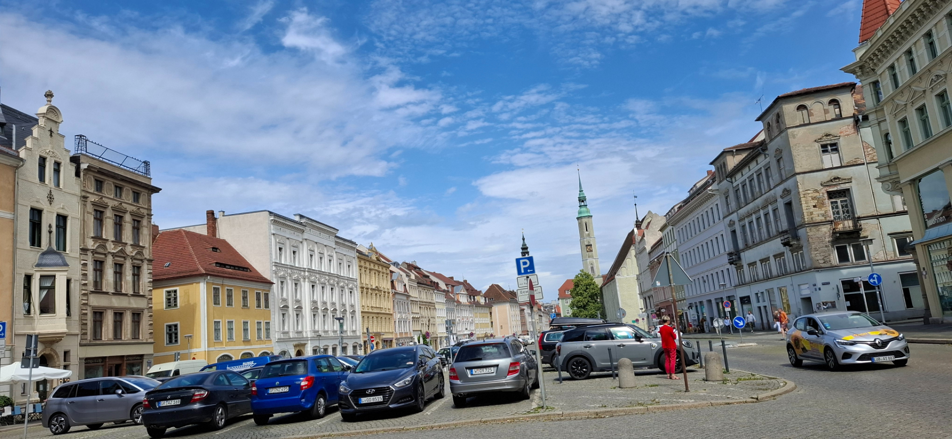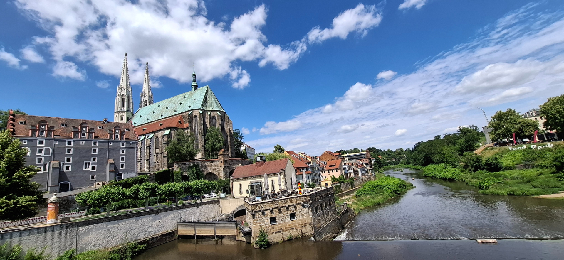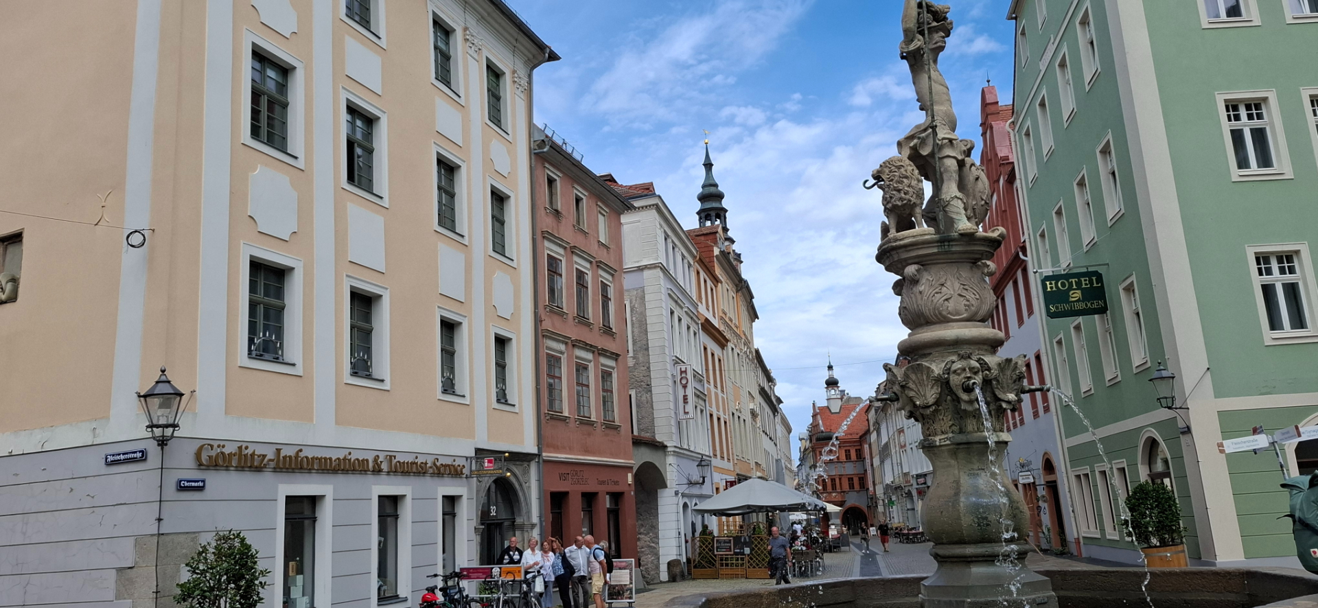 В Саксонии на границе с Польшей есть город интересный - Герлиц. Через него проходит так называемый 15-меридиан, определяющий Центральноевропейское время. Точнее это два города, разделенные одной рекой. В 1945 году по решениям Потсдамской конференции город разделили пополам: основная часть осталась на западном берегу, а бывшее предместье на противоположном берегу получило польское название - Згожелец. Так что ехала я в один город, попала сразу в два.От вокзала можно прямо, прямо- дойти до Альтштадта. Или доехать, напрмер, трамваем N1.
