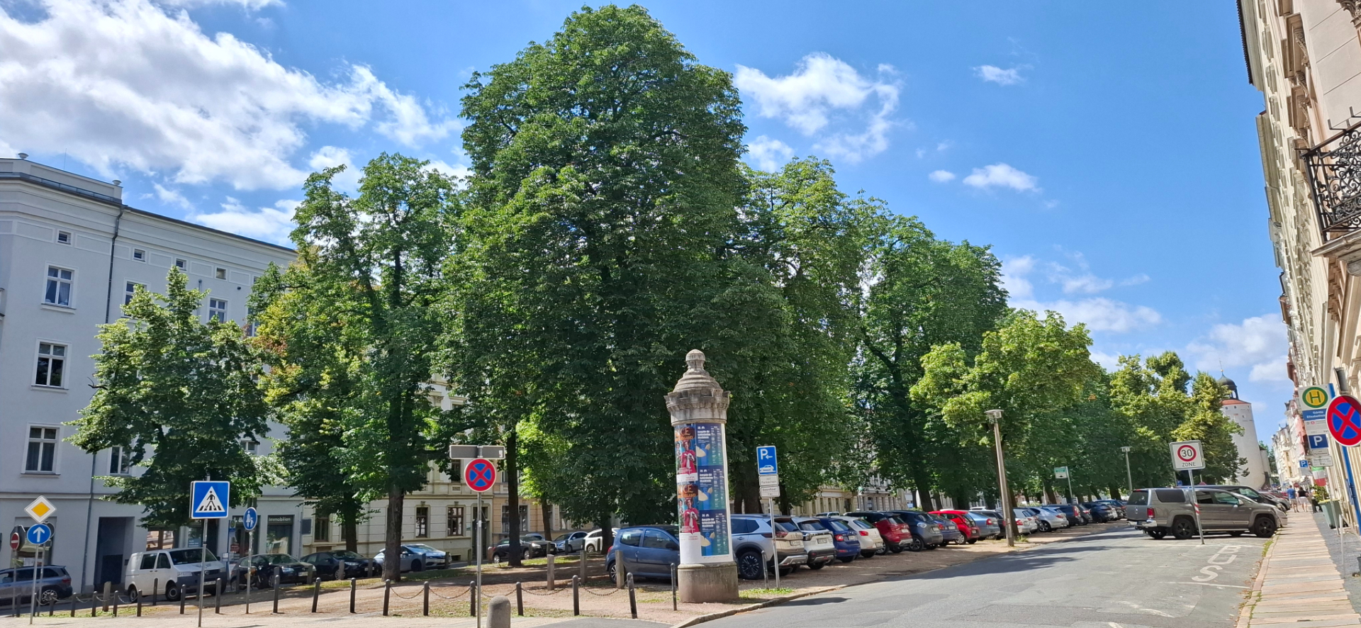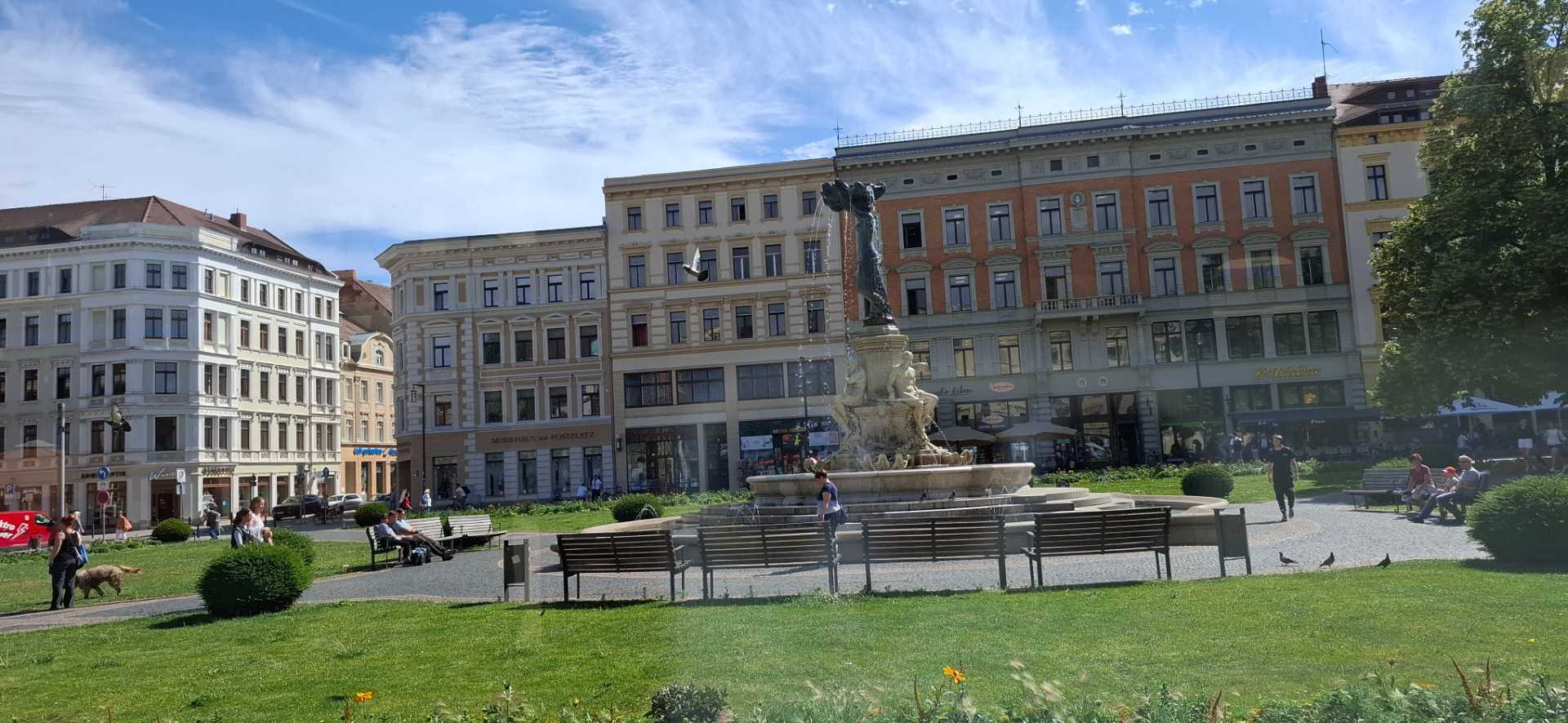 Сначала прошла по части центра Герлица. На Почтовой площади выделяется краснокирпичное здание суда. Площадь с фонтаном появилась во второй половине XIX века на месте бывшего рынка крупного рогатого скота, когда здесь были построены здания почты и суда. Перед ними обустроили под сквер, украсив его фонтаном «Мушельминна». Название от двух слов: «Muschel», что означает «раковина», и уменьшительного от имени «Вильгельмина». Это жители Гёрлица придумали такое название из-за бронзовой женской фигуры с раковиной в руках наверху.
