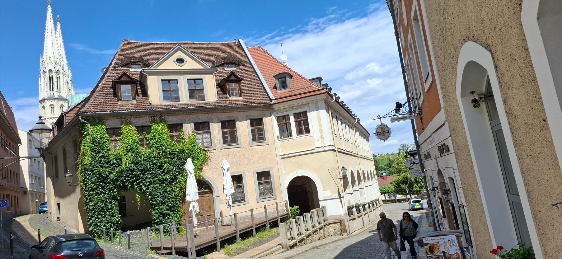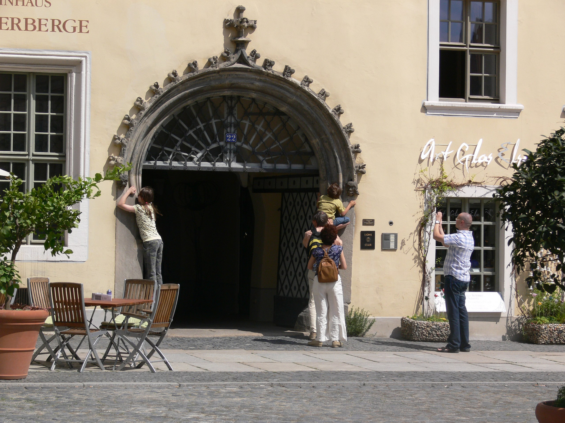 Вот так кругом всего центра, даже после посещения Польши, и вышла в историческое ядро Герлица. Площади Обермаркт и Унтермаркт разделяют несколько зданий, объединенных в единый комплекс. На входе со стороны Ратуши на «площадь Рынка» выделяется ренессансной красотой Шёнхоф с угловым эркером, название дома и переводится «красивый дом-двор». Он самый старый светский ренессансный дом к северу от Альп. Внутри находится исторический музей Силезии (Schlesisches Museum zu Goerlitz).