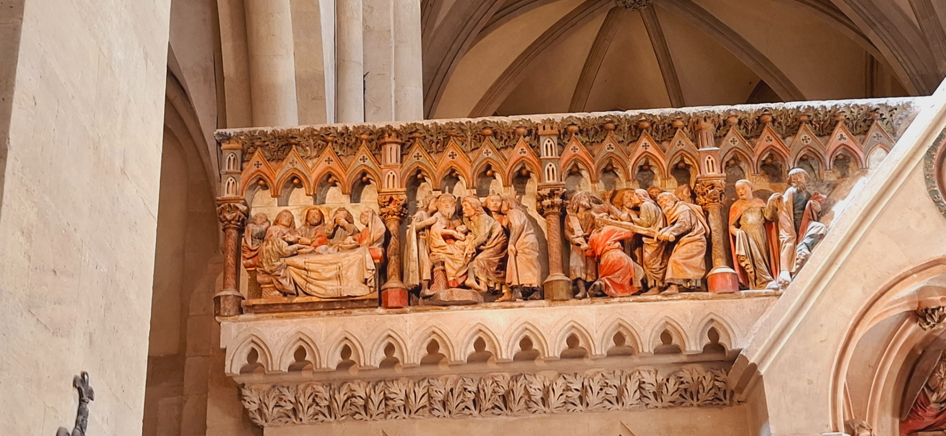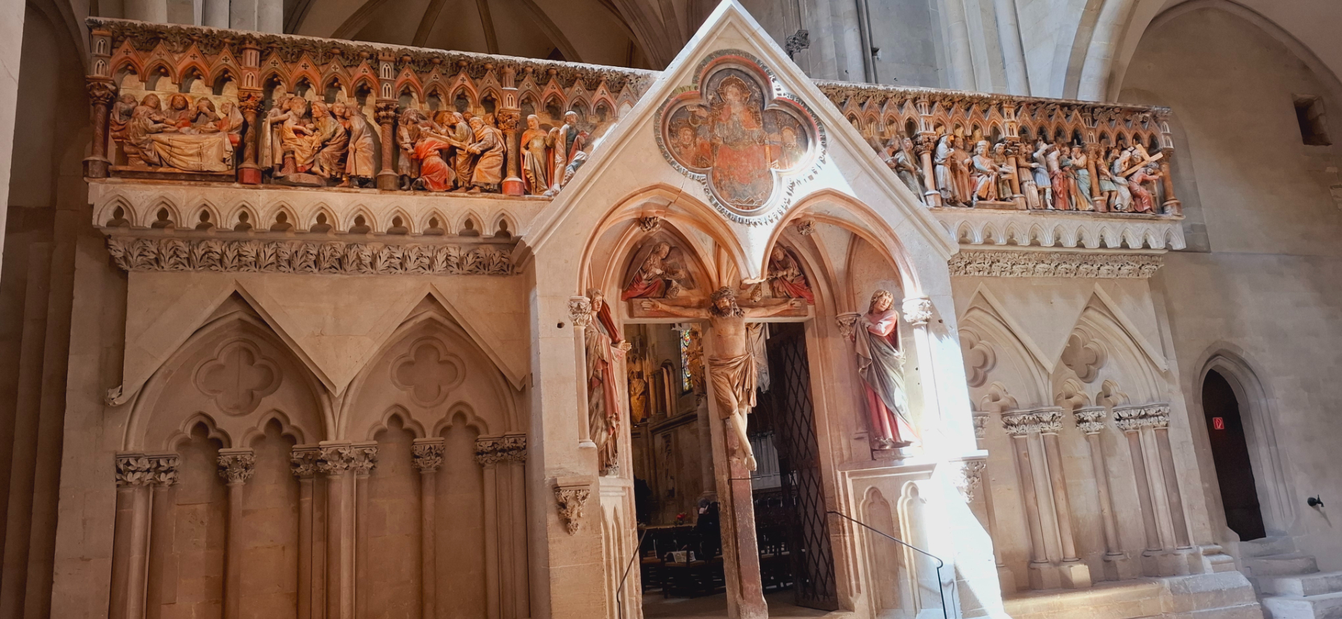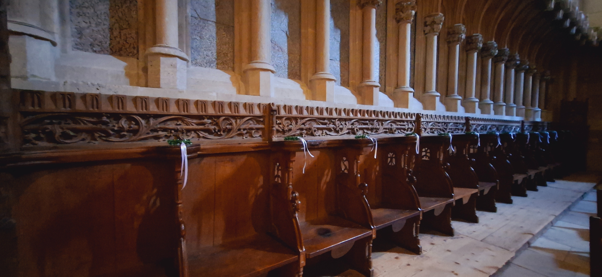 Композиции на перилах лестницы, ведущей на восточные хоры иллюстрируют истории из «Святой Франциск и животные» и «Узкий путь в рай». Резьбой по дереву украшены скамьи для клира на верхнем восточном хоре, созданные безымянным резчиком в 1260 году.