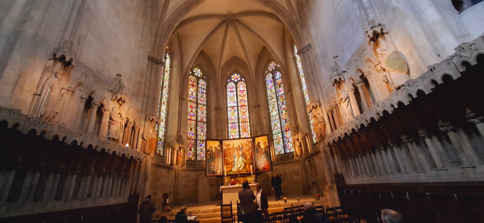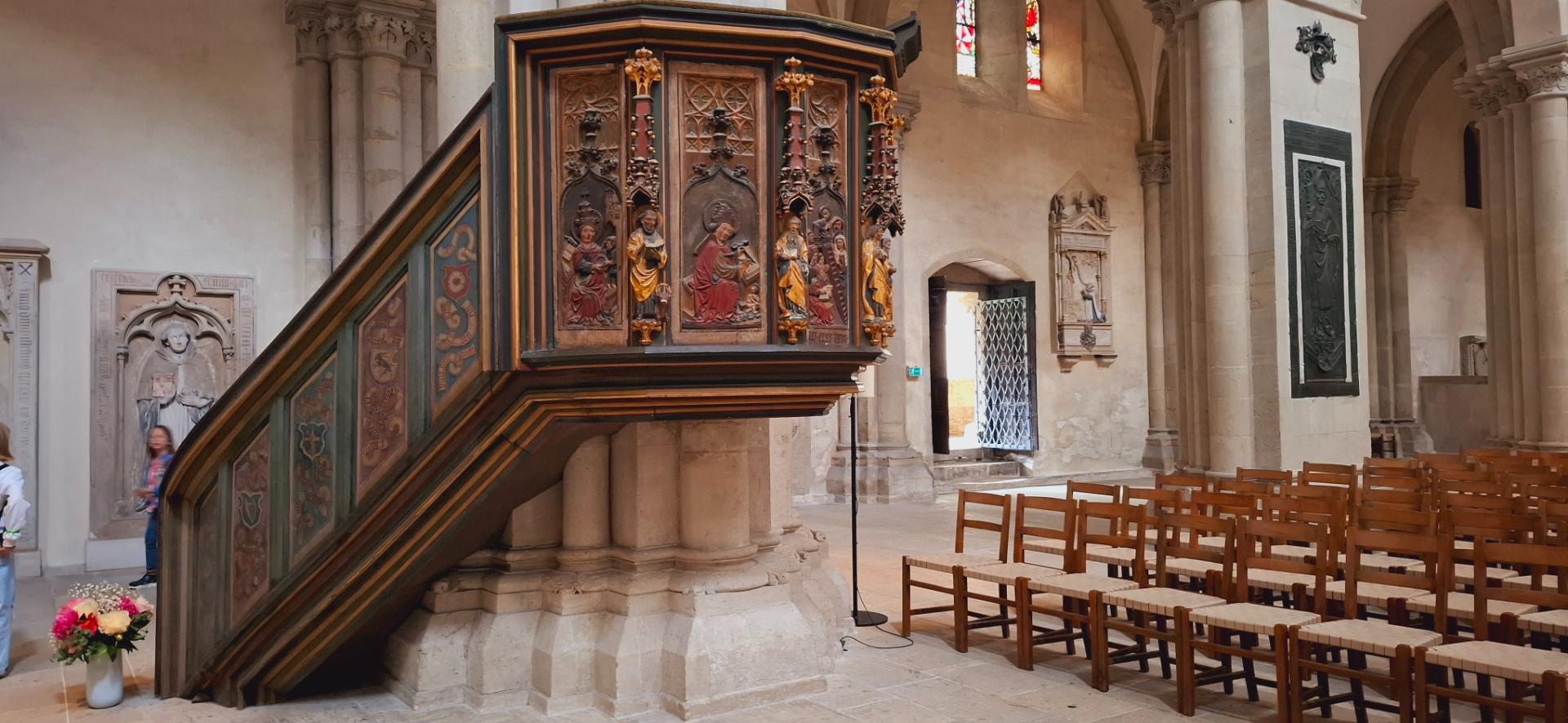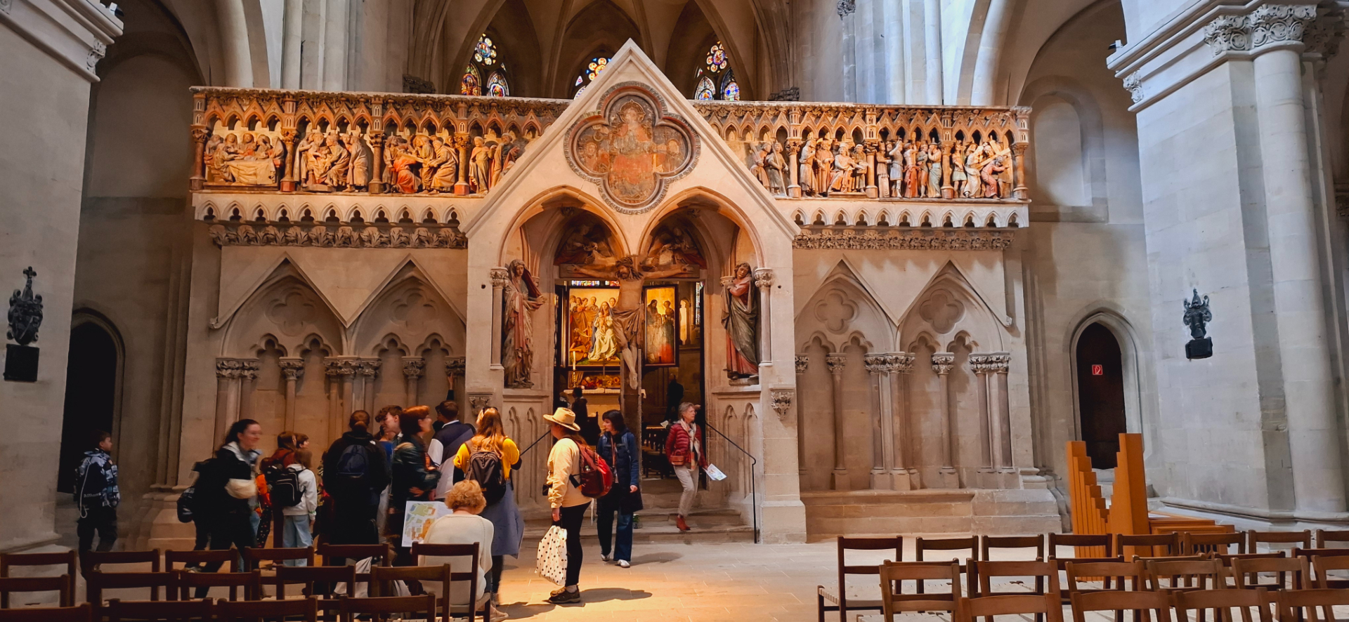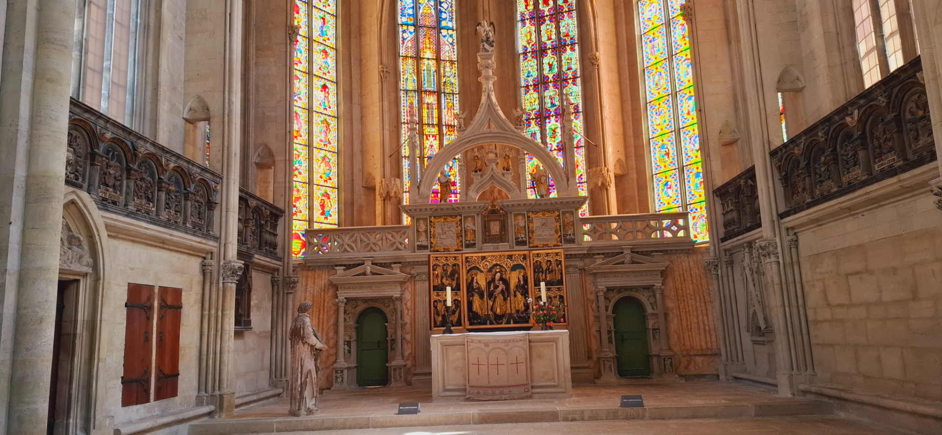 Композиции на перилах лестницы, ведущей на восточные хоры иллюстрируют истории из «Святой Франциск и животные» и «Узкий путь в рай». Резьбой по дереву украшены скамьи для клира на верхнем восточном хоре, созданные безымянным резчиком в 1260 году.