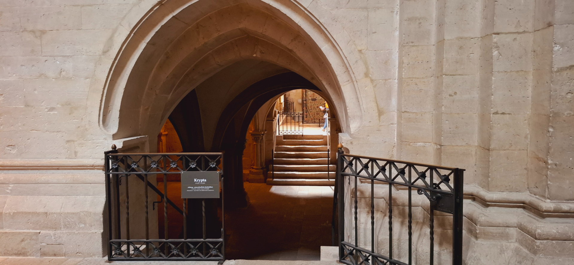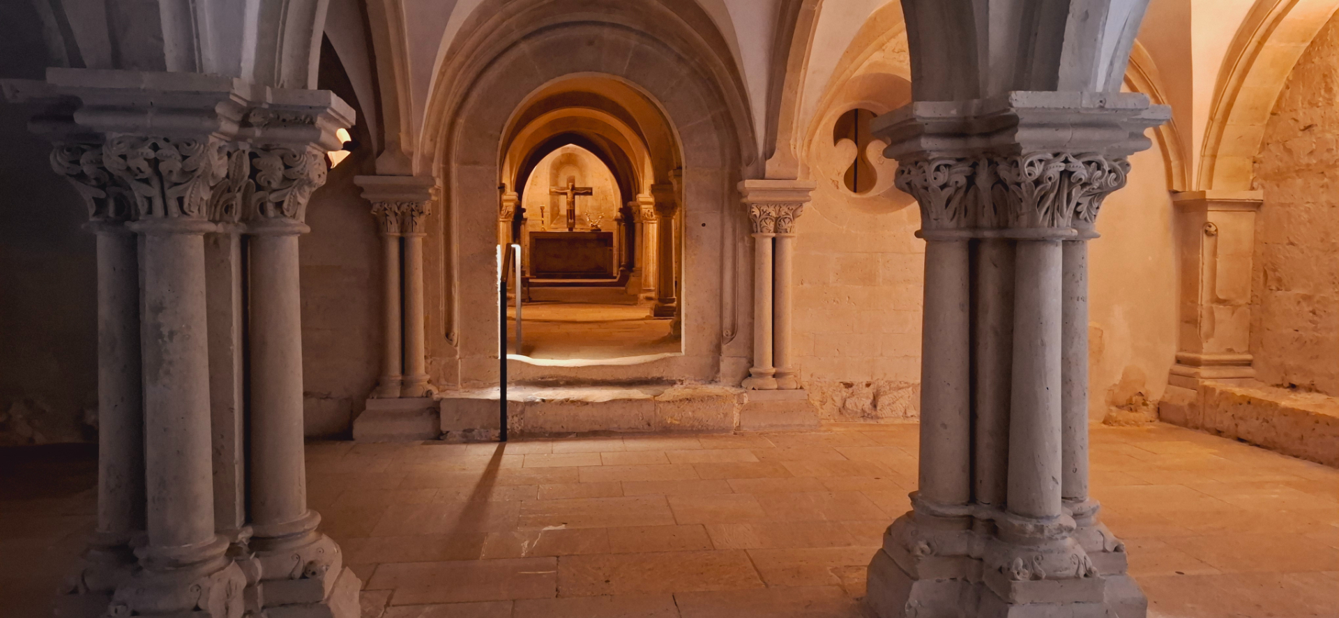 Под ним есть крипта, оставшаяся от первоначального собора 1042 года. Она старейшая часть собора, датируется XII и XIII веками. В центральной части два бра в виде пророка и ангела, созданные художником Генрихом Апелем.