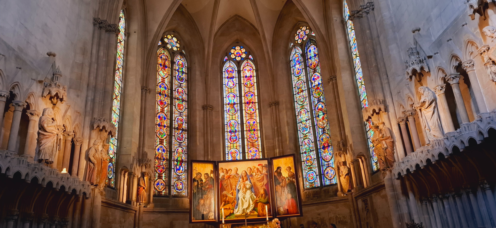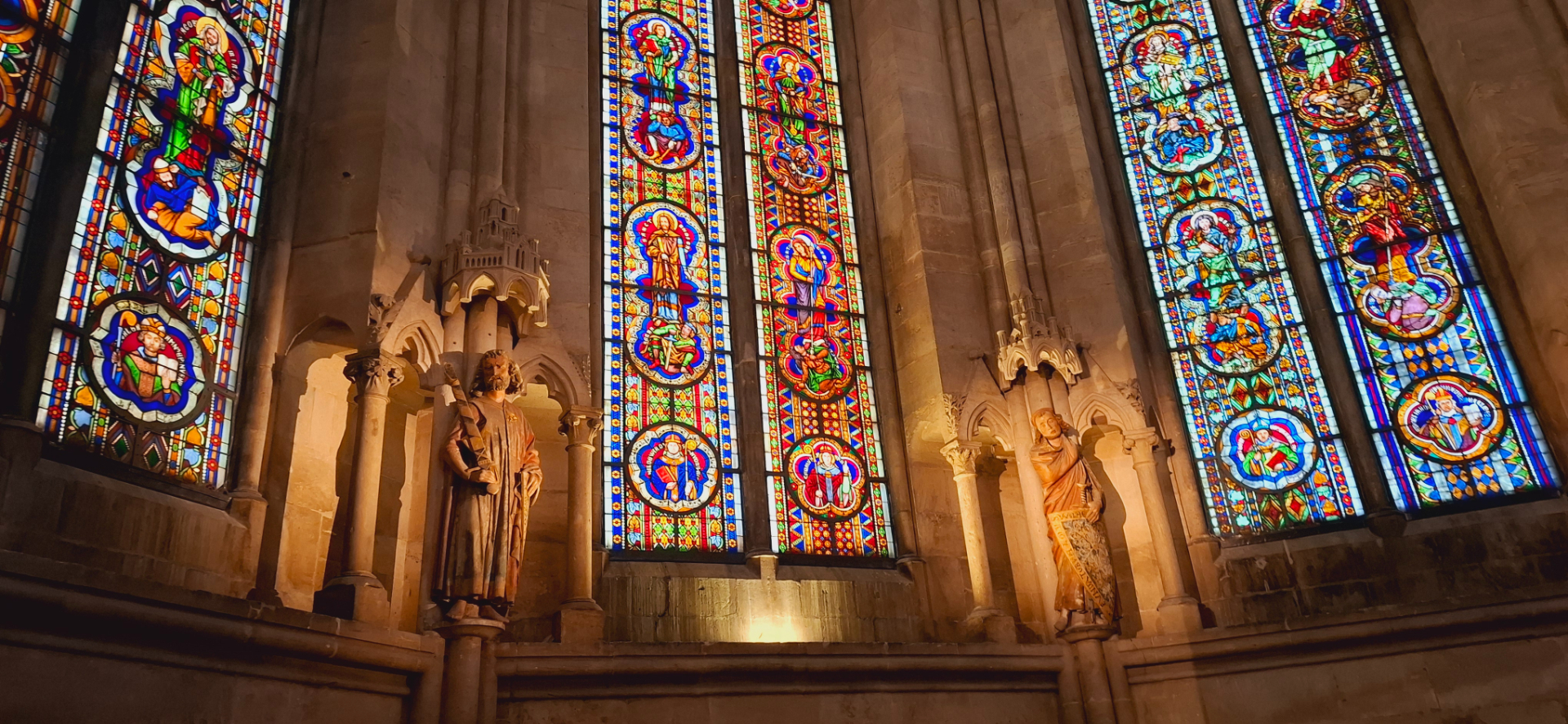 И наконец взошла в западный хор, к скульптурам, которые одни из основных сокровищ собора. В соборе в1260 году были выставлены ростовые скульптуры донаторов, или учредителей и спонсоров строительства этого собора.