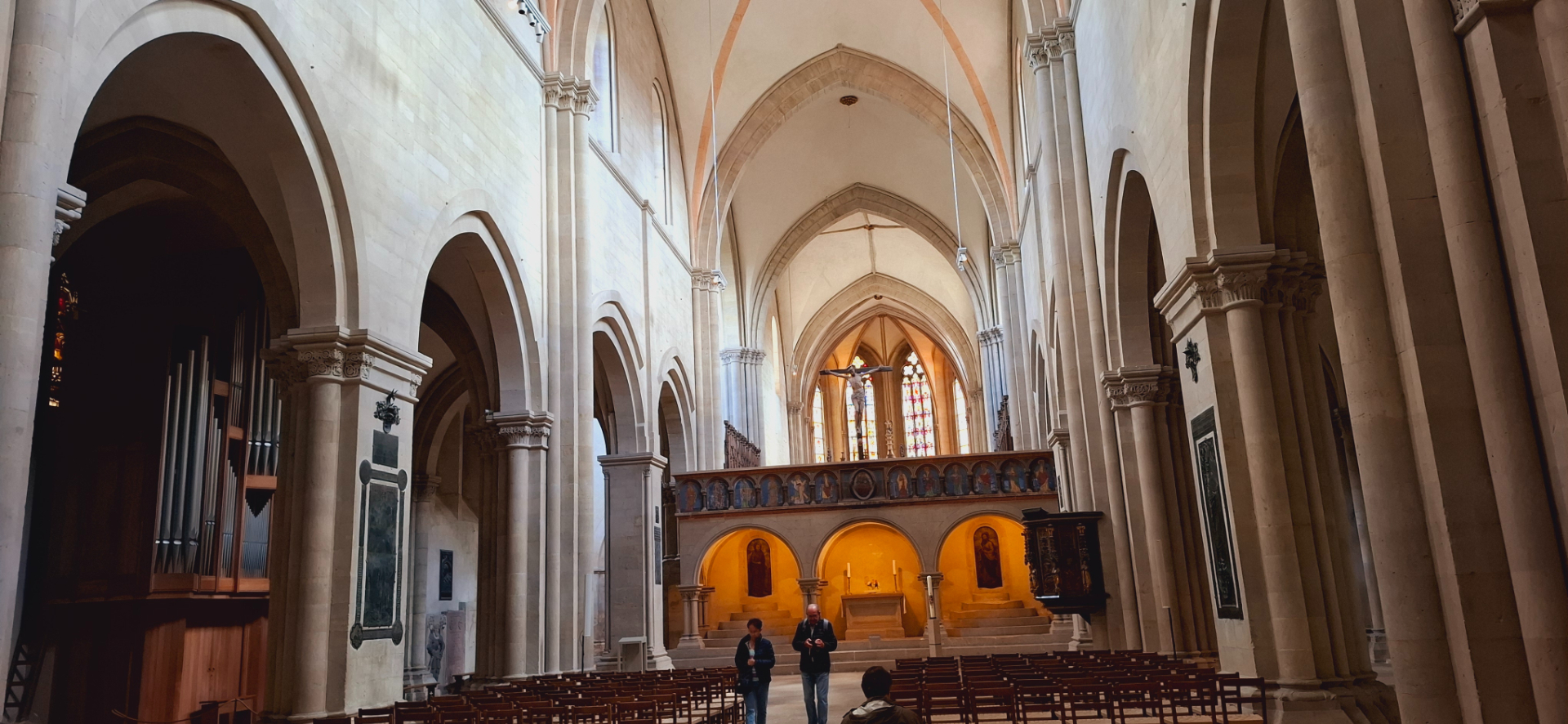Интерьер собора имеет все признаки позднероманской архитектуры.