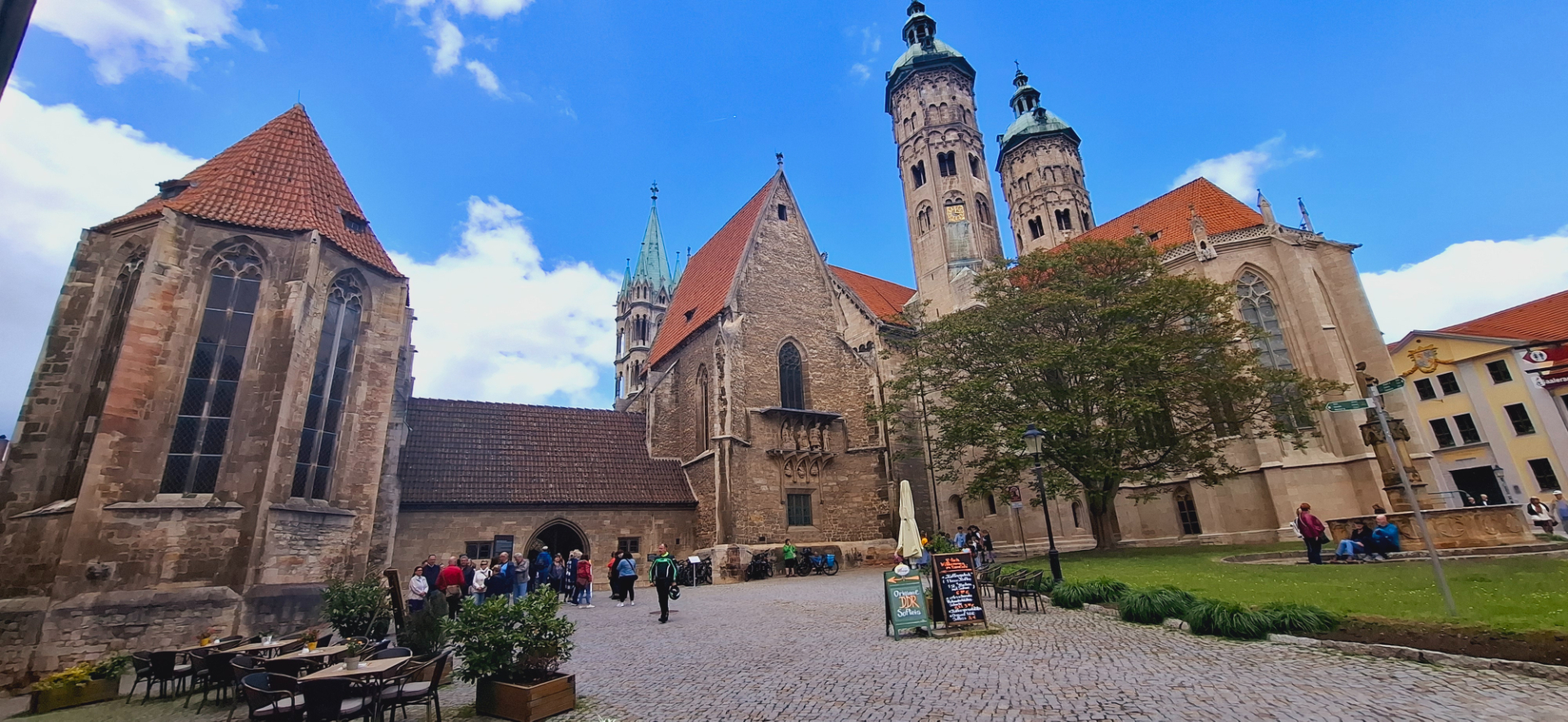 В маленький городок Наумбург туристы из разных стран приезжают конкретно посмотреть на древности и сокровища Собора. Городок небольшой, его исторический центр совсем малюсенький, но по нему ходят толпы людей. Маршрут у всех один – из переплетения нескольких улочек выбраться к главной мекке поездки и главной достопримечательности города – Собор Святых апостолов Петра и Павла.