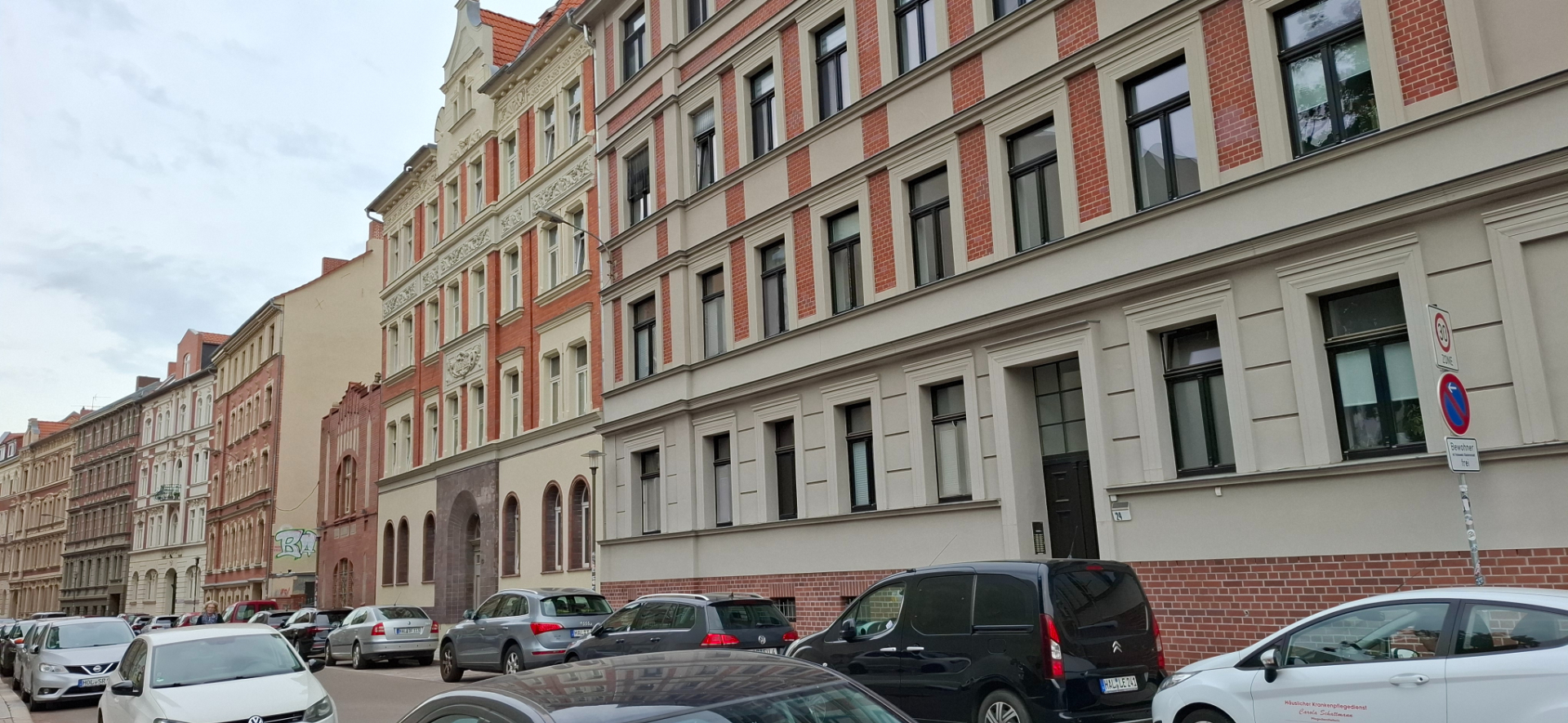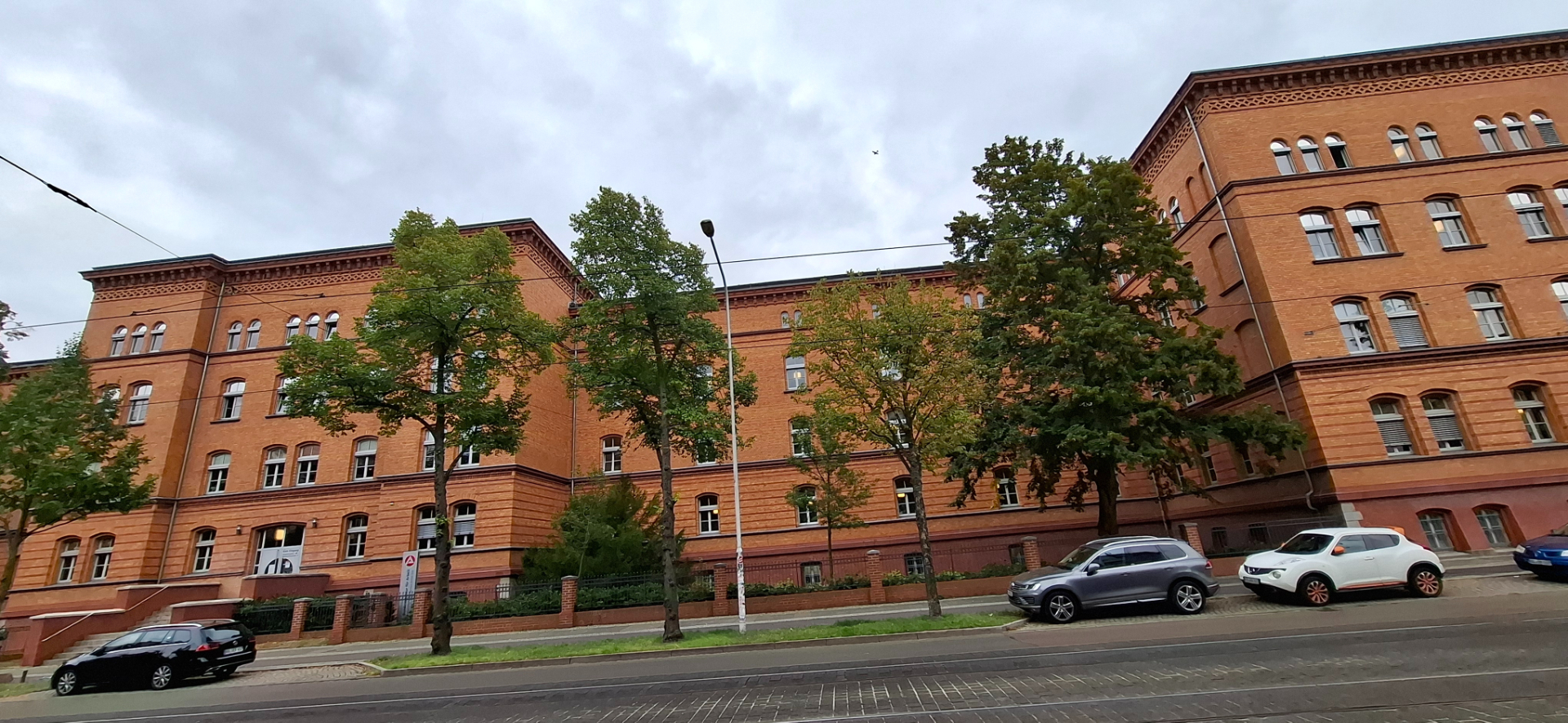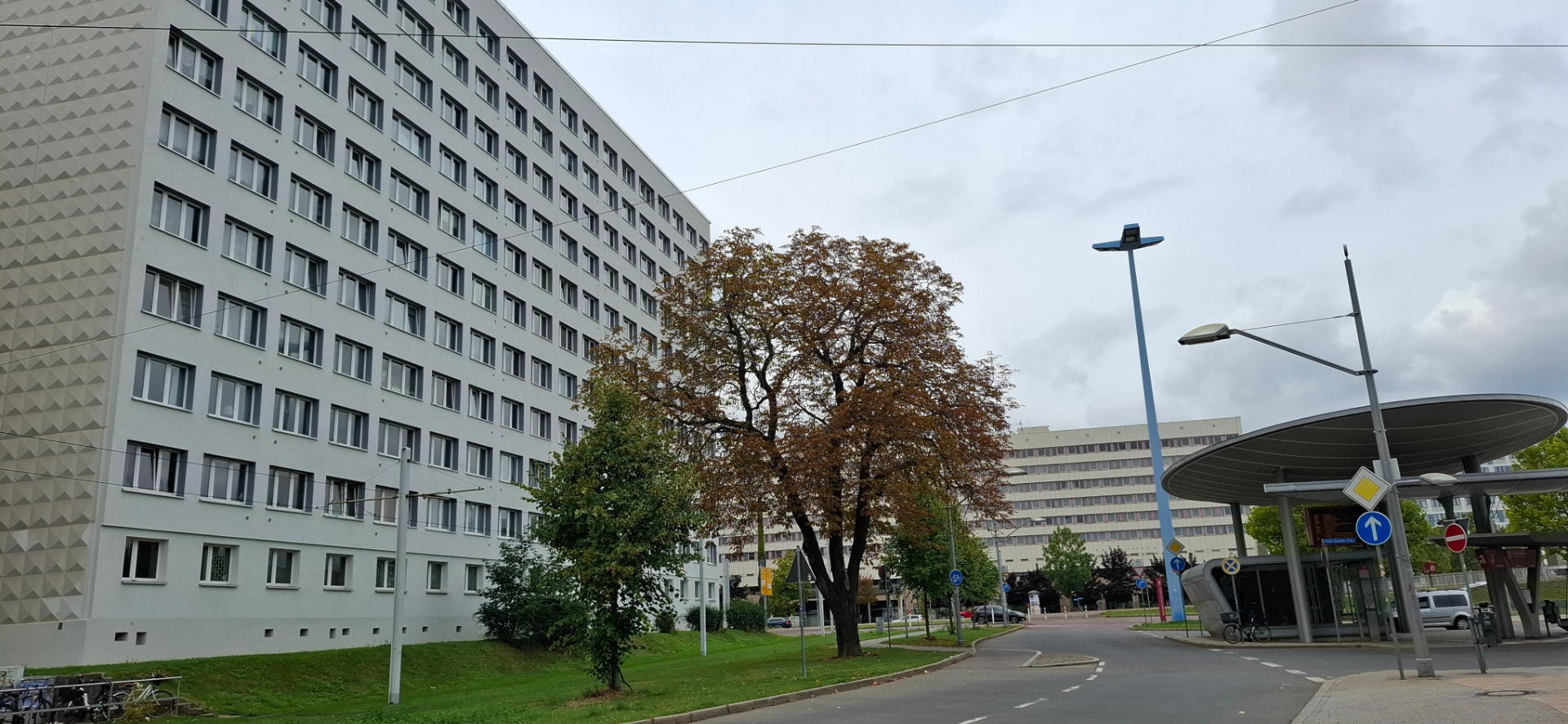С вокзала выходят на привокзальную площадь, где вокруг советские дома, оставшиеся со времен ГДР. Они органично смотрятся с современным вокзалом и трамвайными линиями.