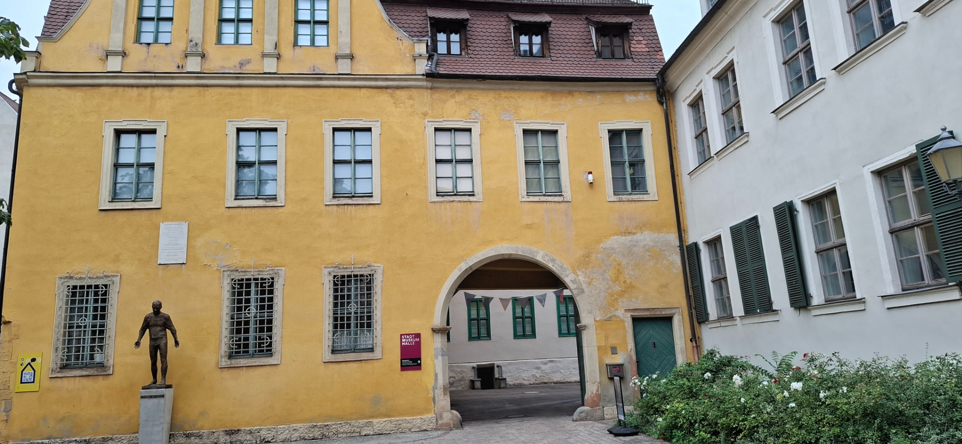 Здесь и городской музей находится на Große Märkerstraße, одной из старейших улиц. История здания уходит корнями в эпоху, когда оно служило жилым домом профессора Кристиана Вольфа. После смерти философа Кристиана Вольфа (1679–1754) его жилой дом был преобразован в типографию с собственными печатными станками. Здесь осуществлялись набор, печать и сшивка вплоть до 1992 года, печатались преимущественно научные и философские труды. Сам профессор внёс огромный вклад в развитие философской мысли и образования.