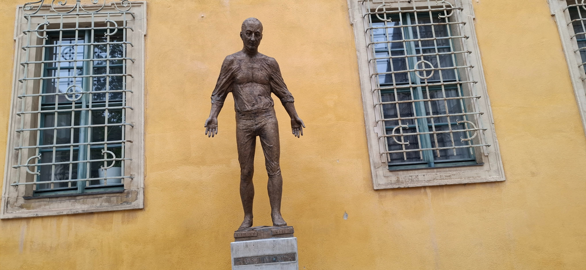 Зато нашла уголок города достойный названия «французский». Красивые дома обрамляют небольшую улицу с площадью, где стоят ресторанные столики. Недалеко здание с атлантами.