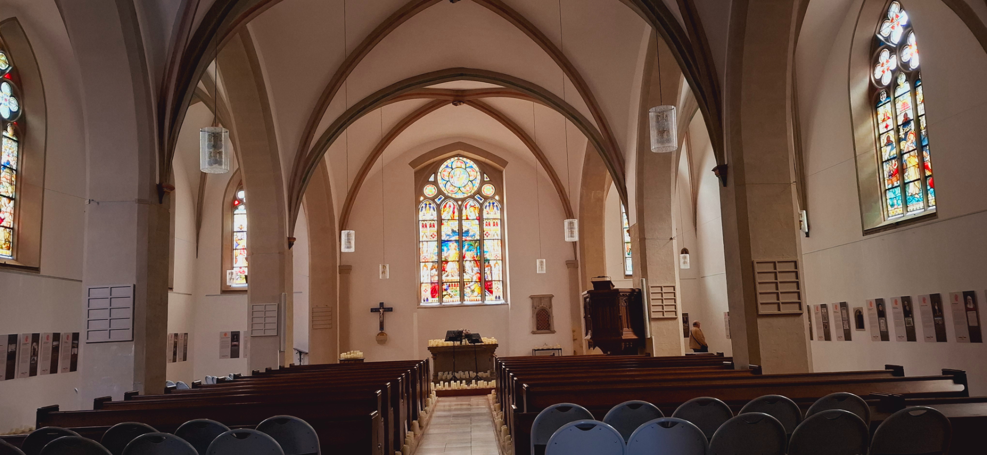 Мне понравилось это тихое местечко, кроме редких прохожих, нет туристов и чувствуешь себя пришельцем из будущего, очутившемся в стародавнем прусском городке. Церковь была открыта, что странно для меня. Оказалось, я вовремя пришла: стала внутри ходить, из подсобного помещения вышел мужчина и потом ждал меня на улице, чтобы закрыть за мной дверь ключом.