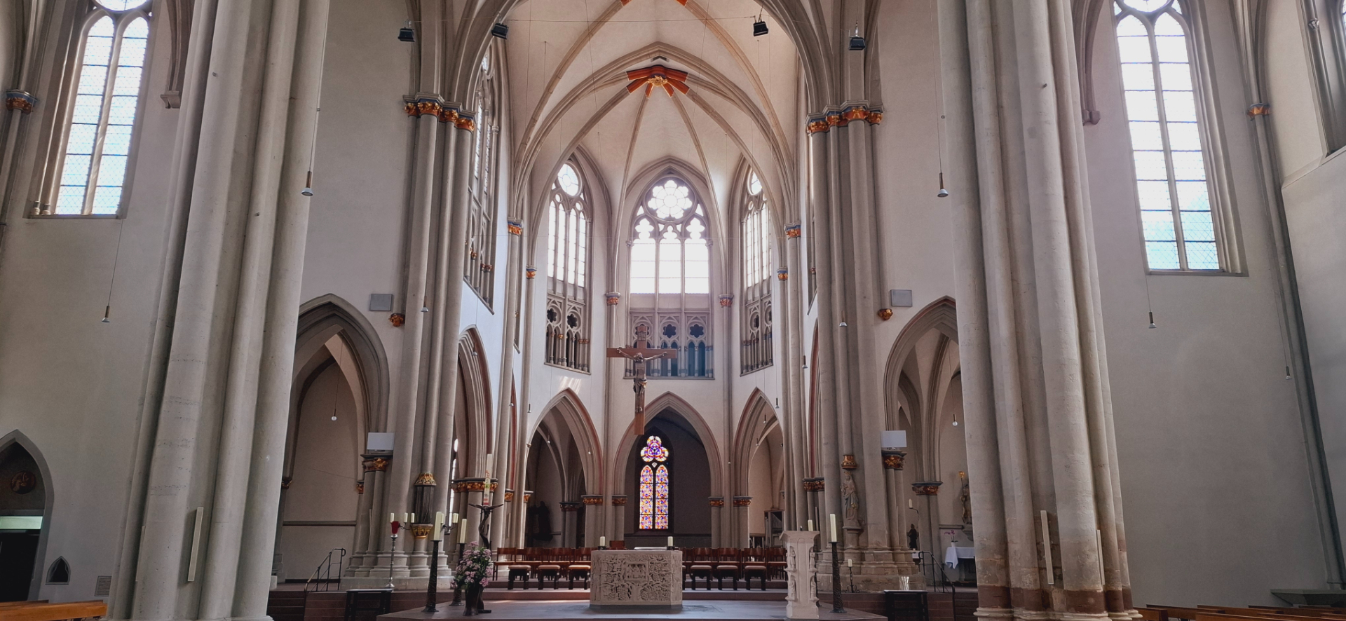 Возвышается очередая кирха Св. Михаила. Изначально построена в 1157 году, потом расширялась и перестраивалась в 13 и 14 веках. Внутри интерьер сдержанный, без украшательств.