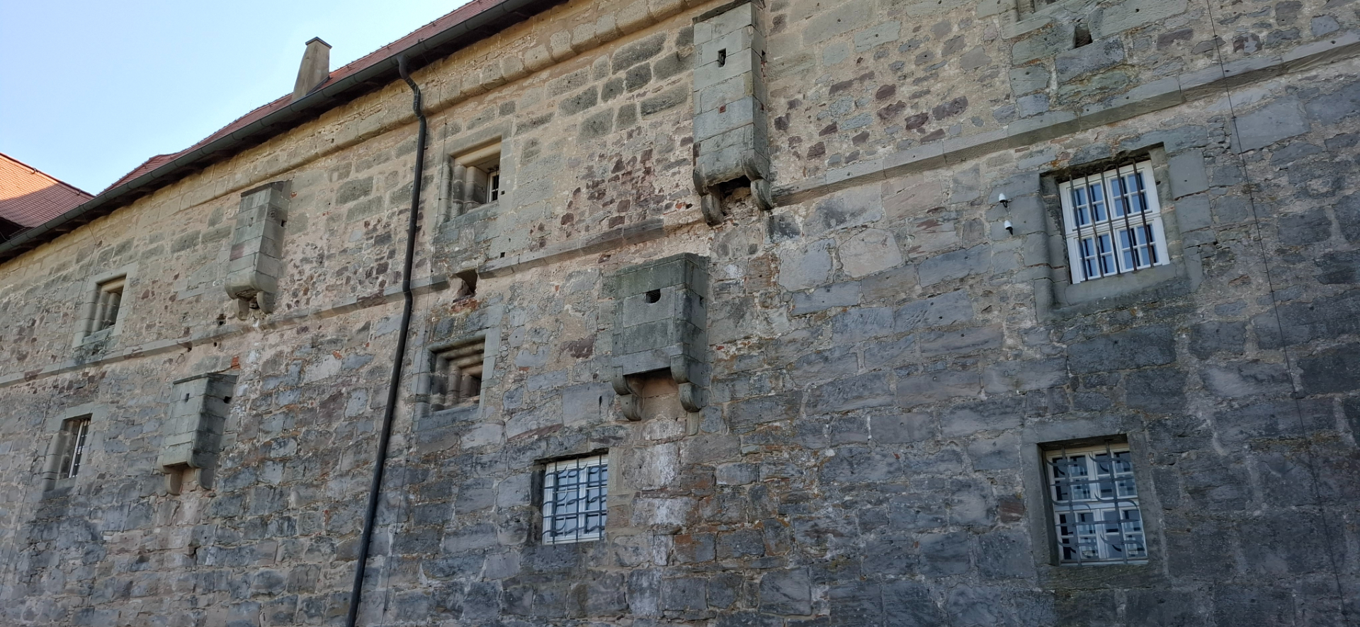 На внешних стенах крепости и тут и там выступают небольшие «кабинки», которые и служили кабинками туалетов. До возведения дополнительных оборонных стен, под ними был ров с водой, куда нечмстоты и отправлялись. Сейчас оказалось над сушей, такая фишка крепости.