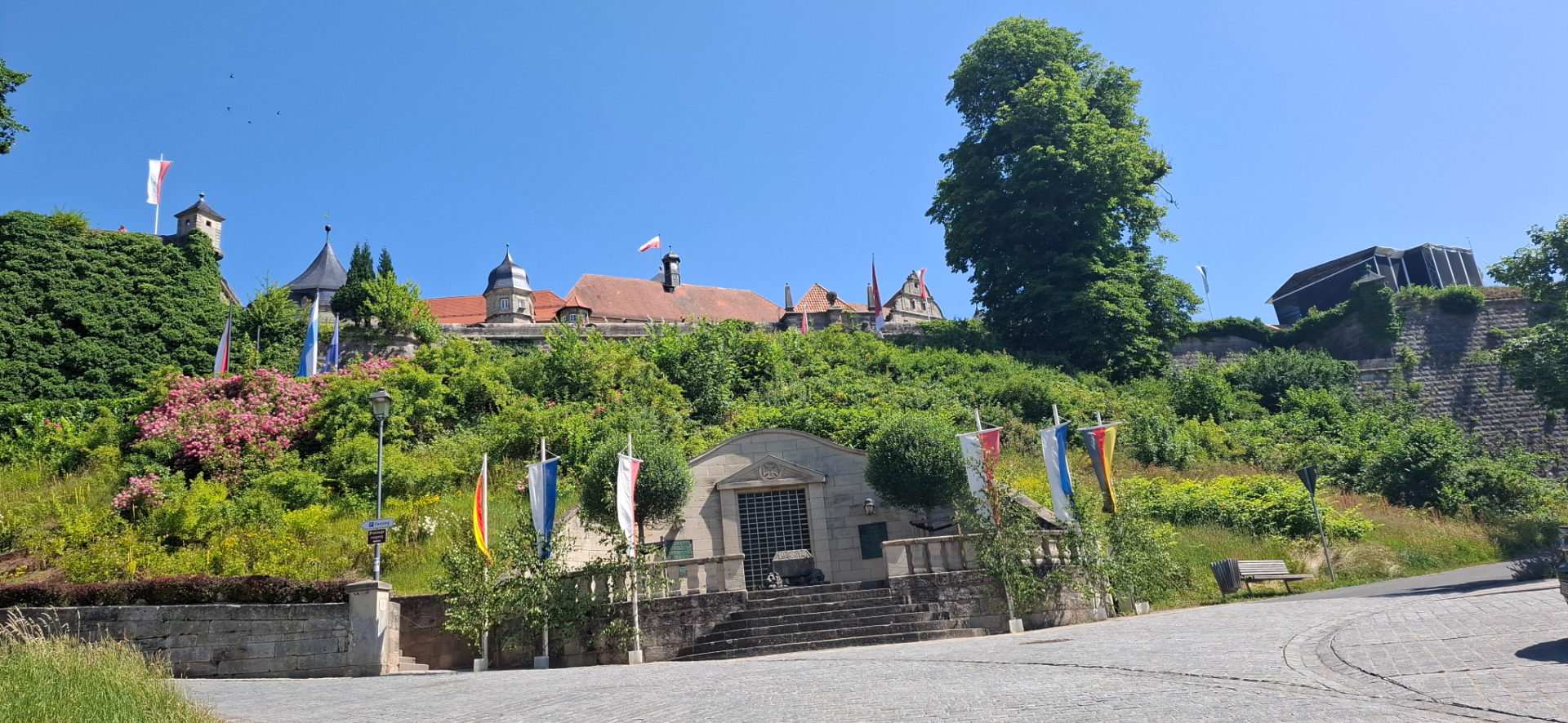 Есть музей в крепости Кронаха - Fränkische Galerie, открыт 7 июля 1983 года. Экспозиция посвящена искусству Франконии от Средних веков до эпохи Возрождения. Большинство экспонатов, в том числе и произведения Кранаха, поступили из коллекций Bayerisches Nationalmuseum (Баварского национального музея). Полотна самого Кранаха: : «Christus und die Ehebrecherin» (~1520), «Lot und seine Töchter» (1533), «Schmerzensmann» (после 1537), «Venus und Amor als Honigdieb» (1534). В музей из-за ограниченности времени не заходила - надо было ждать открытия в 11 часов, а я приехала намного раньше. Территория крепости к осмотру доступна с раннего утра. Тем более, только что побывала в музеях Кобургской крепости, где гораздо больше работ Лукаса Кранаха представлены. На углу здания даже есть стилизованная змея-дракон – фамильный герб Кранаха-старшего.