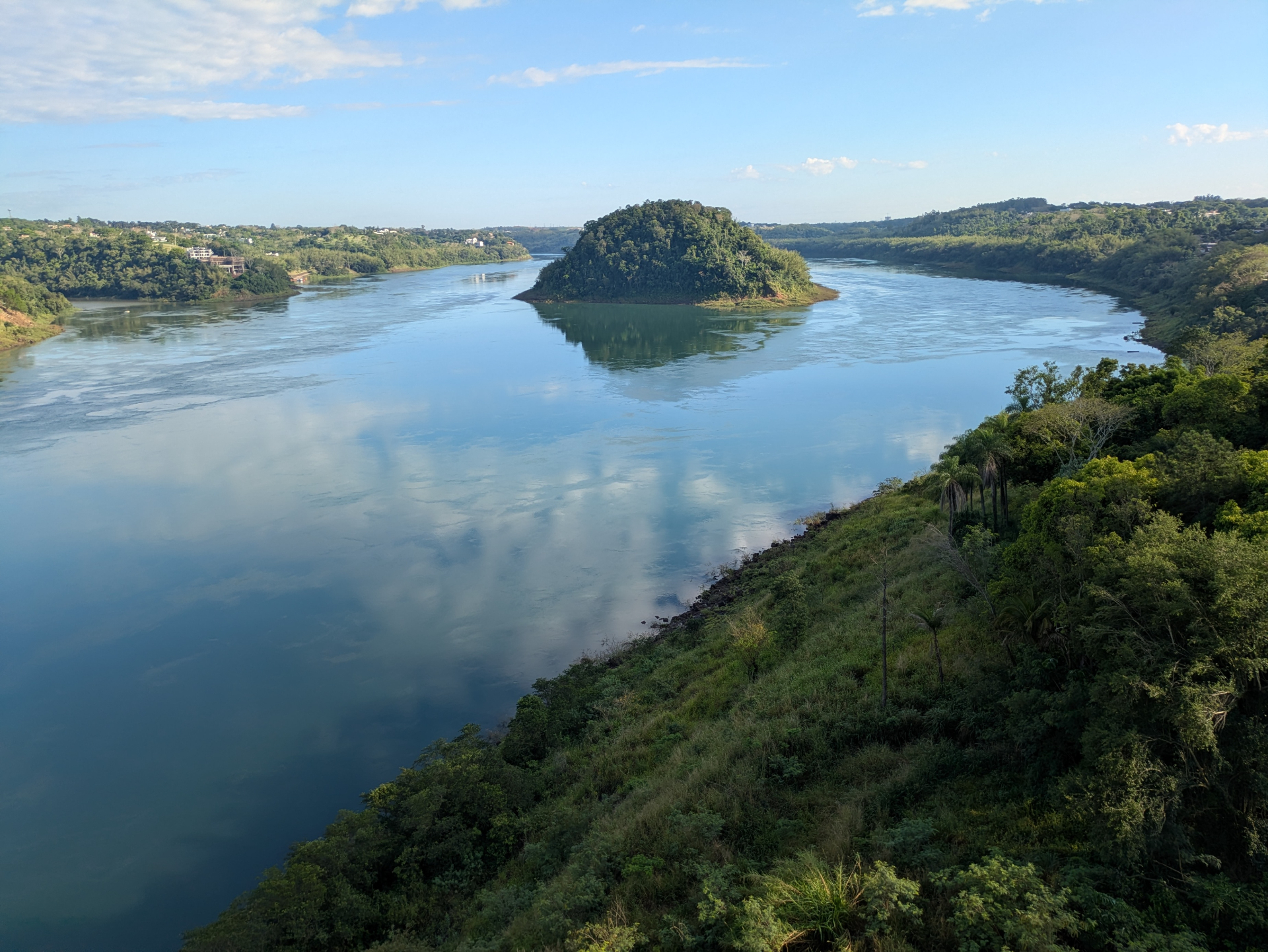 С бразильской стороны опять никакого пограничного контроля. Проходя по мосту, мы сделали несколько хороших снимков Параны, в которой в ясную погоду отражались белые облака.