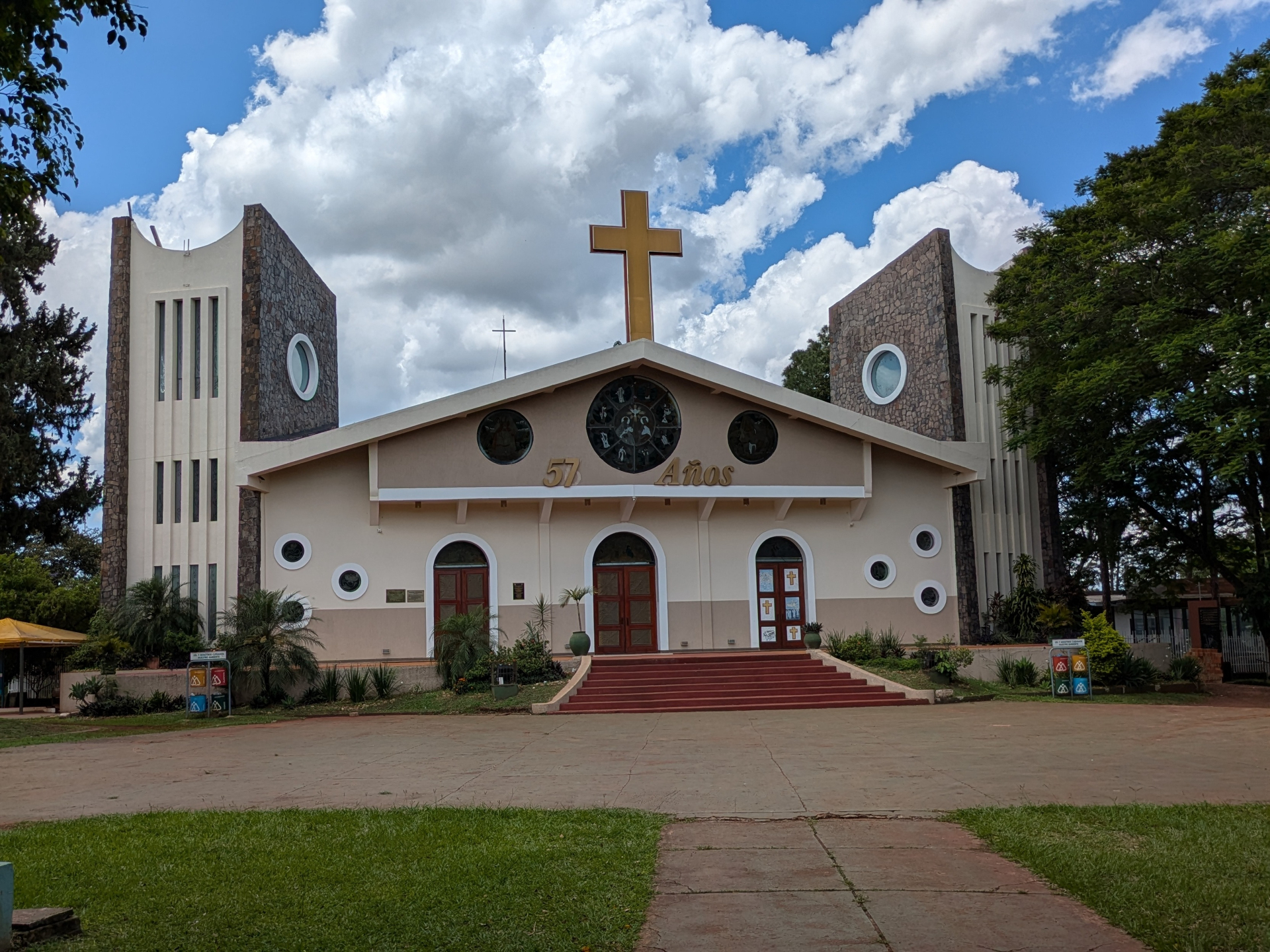 Покушали, и двинулись к центру города, т.е. ближе к границе. По пути встретили самую крупную мечеть в Южной Америке. После неё попался католический собор Сьюдад-дель-Эсте, и он был гораздо меньше, чем мечеть! Зато обладал оригинальной архитектурой и вообще выглядел очень мило.