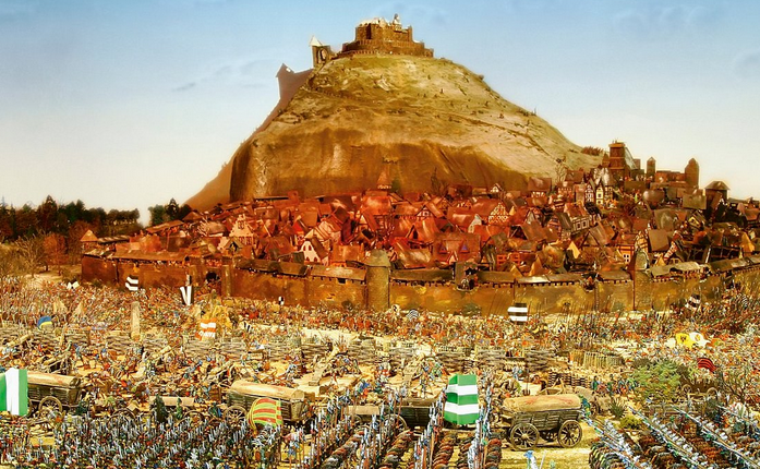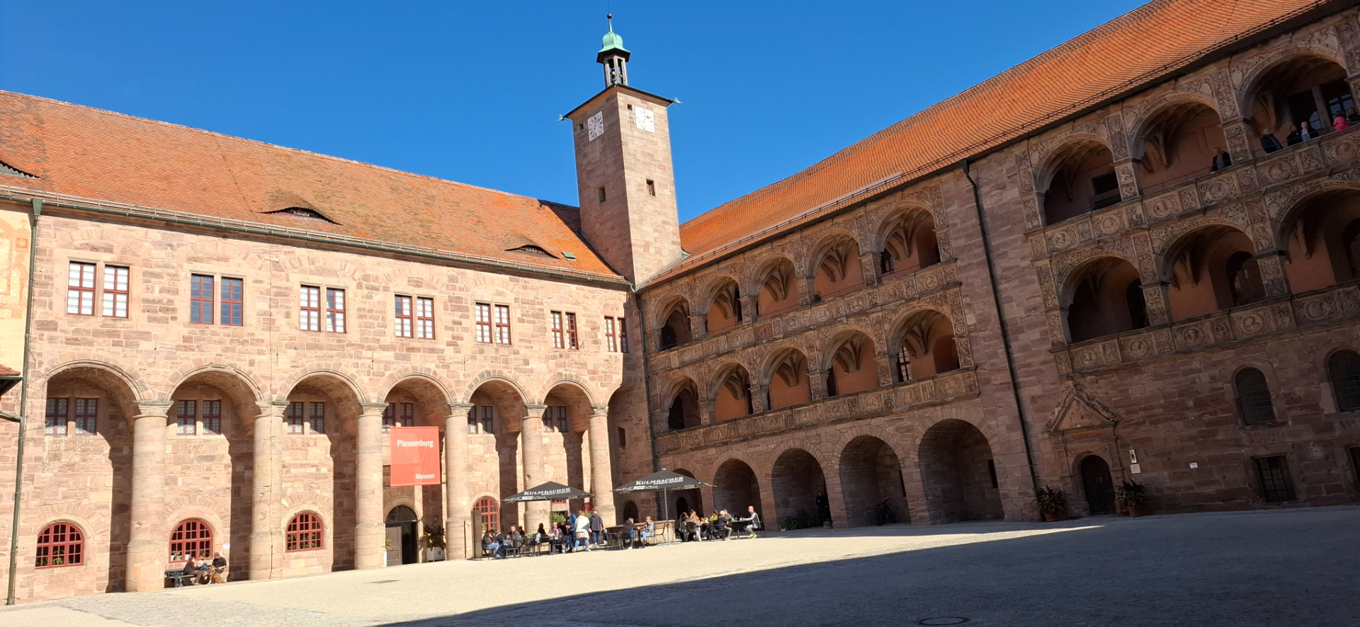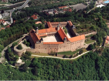 Главным объектом, ради которого едут туристы в этот город, чаще является крепость Плассенбург. Как гнездо, нахлобученное на гору. И не птичье, это гнездо рода Гогенцоллернов. Кульмбах был частью маркграфства Кульмбах-Байройт, которым управляла франконская ветвь Гогенцоллернов. Ее видно уже при подъезде в Кульмбаху, и отовсюду в городе.