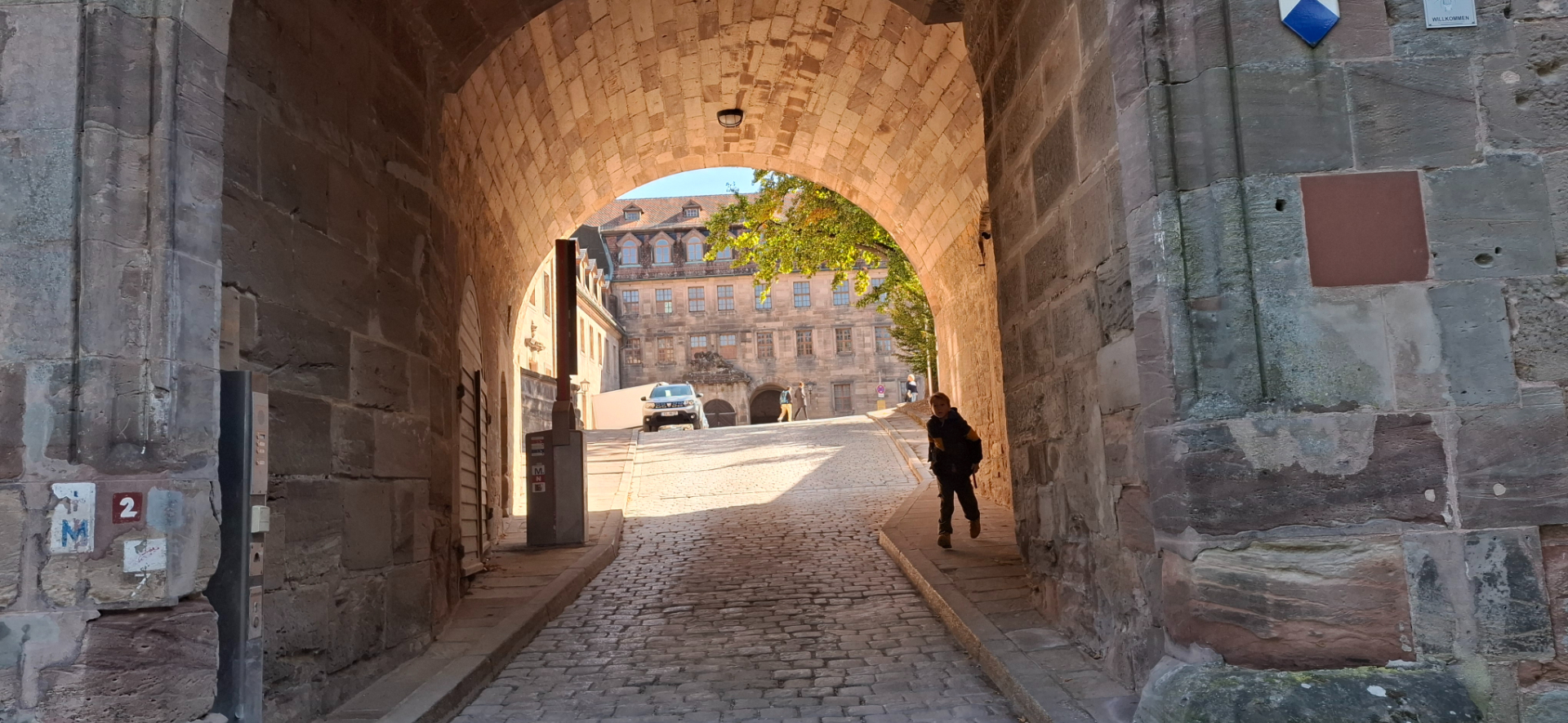 Как контраст с ними, огромное здание с портиком почти на всю высоту, со скульптурами и изображениями на военные темы. Построен, как огромная фюрстская резиденция маркграфов в стиле франконского ренессанса. В Плассенбурге при нацистах располагалась «Рейхsschulungsбург» - школа идеологического воспитания, пропагандистская база. Антураж подходящий. Бывший наследный принц Вильгельм из рода Гогенцоллернов, активно стремился восстановить монархию и видел в Гитлере союзника. Идеология пруссаков-поработителей пересекалась с нацистской: антисемитизм, антипарламентаризм, антикоммунизм. Гогенцоллерны использовали внутреннее и внешнее свое влияние для укрепления Гитлера. В середине 2019 года принц Георг Фридрих, принц Пруссии, глава дома Гогенцоллернов подал иски на постоянное право проживания для своей семьи в Цецилиенгофе или одном из двух других дворцов Гогенцоллернов в Потсдаме, а также возвращение некоторого другого имущества. В 2025 году был создан фонд «Art Foundation» для управления историческим наследством, и некоторыми властями подтверждается роль семьи в истории нацизма. Представитель рода - Георг Фридрих, признал «компромиссы семьи» с нацистским режимом. По реституции, имущество подозреваемых в этом, не возвращается.