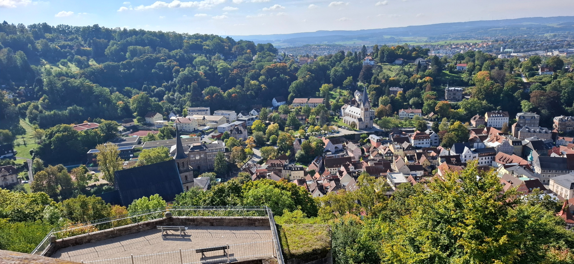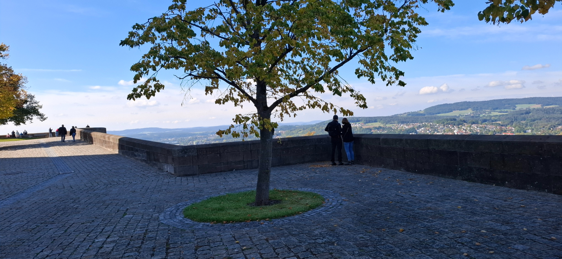 С обзорной площадки около Верхнего двора панорамные виды на город сверху, от крепости. Отсюда видно, что сам исторический центр невелик и почти прилепился к холму с крепостью. Альтштадт – слева, его улочки вьются около подножия горы с крепостью.