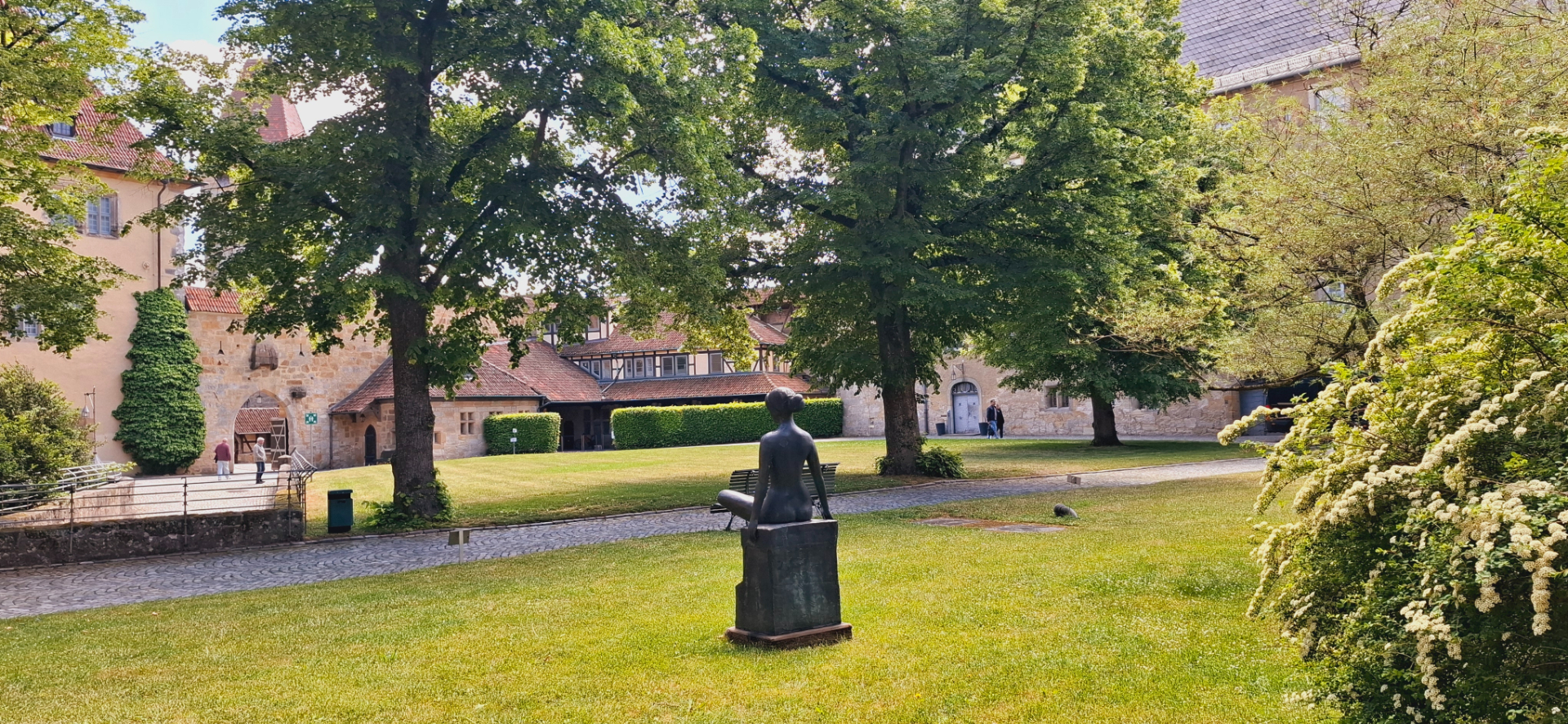 Ищем N1404 или какой другой, что довезет через 2 остановки, третья будет Театрплац. Можно и дойти, это недалеко. Там наискосок на противоположную сторону через перекресток другая автобусная остановка. И ждать N1405 именно в «Шлосс Кобург», ходит один раз в час, в 16 минут - что от Театрплац, что назад от крепости. Опознавательным знаком может служить памятник принцу Фридриху Иозиасу Саксен-Кобургскому, стоящий перед перекрестком. Был выдающимся полководцем, но для Кобурга сделал больше, чем на поле брани. В 1806 году спас Кобург от разграбления, искусно направив наполеоновские войска дорогами в обход города.