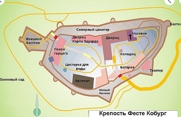 Любопытный факт, связанный с замком Кобург: наполеоновские завоеватели большинство крепостных пушек отправили на переплавку, а саму крепость стали использовать в качестве тюрьмы. В хозяйственных постройках расположились лазарет и казармы. Гёте приезжал в замок из Веймара по государственным делам, Мартин Лютер жил и работал здесь какое-то время, а в 19-м веке хозяином Кобургской крепости был герцог Фердинанд Эрнст Август Саксен Кобургский, дослуживший в русской армии до звания генерала от кавалерии. Его прямые потомки правят сейчас в королевствах Великобритании и Бельгии.