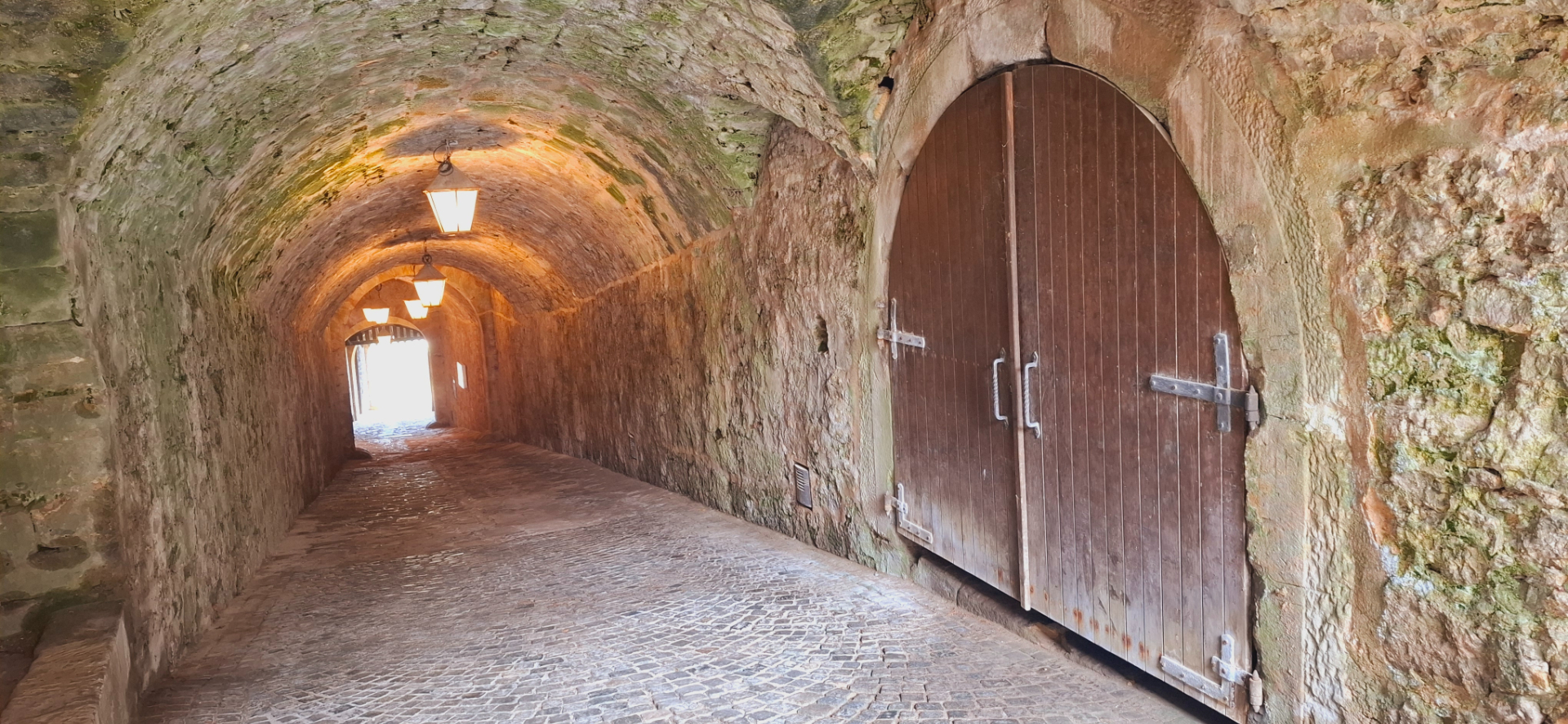 Внутри тоннеля есть вход к двухэтажным подвальным хранилищам, ныне являющимися частью музея. Под крепостью обнаружено несколько каменных штолен, ведущих к огромным подземным резервуарам для воды.