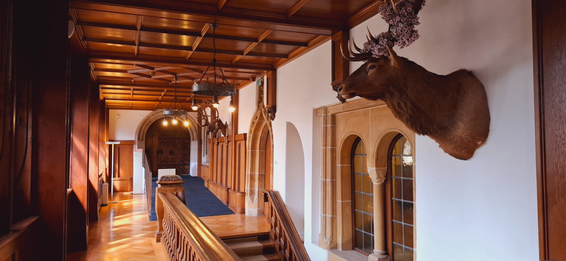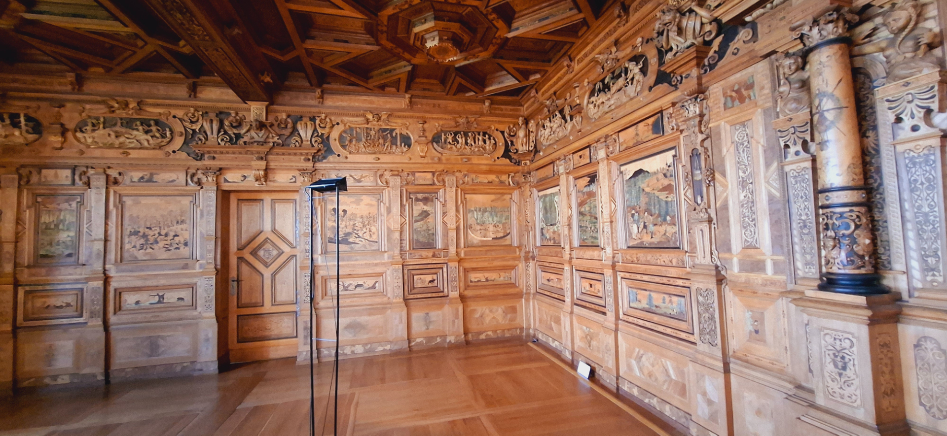 «Охотничья комната» - через холл от «танцевального зала» находится. Деревянный шедевр в тюрингско-франконском стиле, завершенный в 1632 году, является одним из лучших образцов панно в Германии позднего Возрождения.