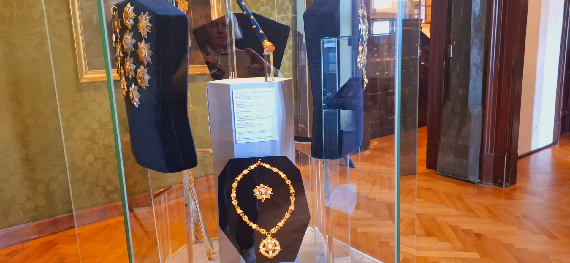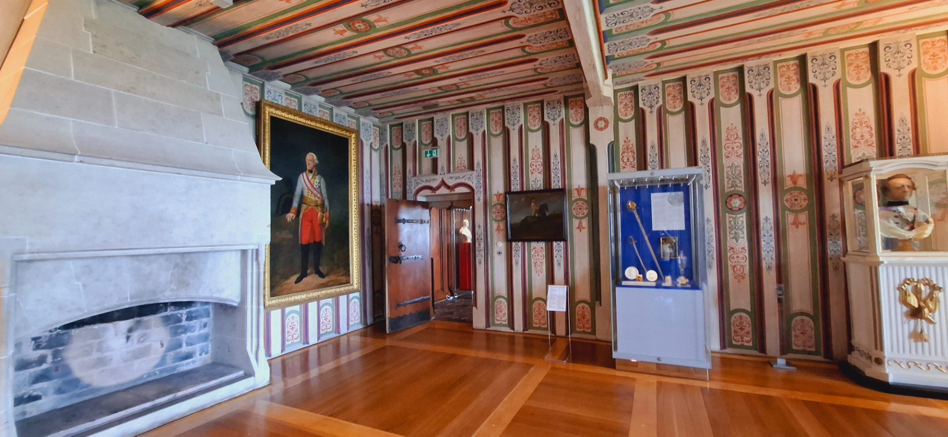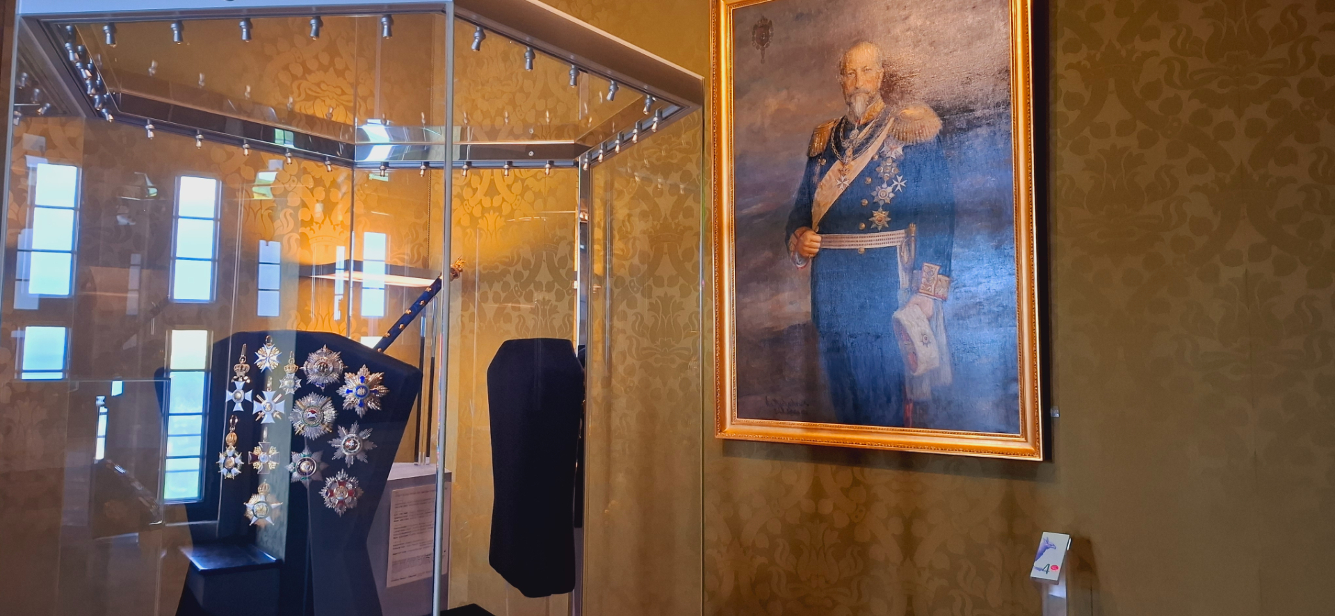 Рядом кабинет Карла Эдуарда, теперь называемый «орденской комнатой». Здесь небольшое собрание монет и медалей, 3/4 коллекции наши, русские. Портрет на стене герцога с наградами, которыми он сам себя «премировал», как главный в этом уголке Германии.