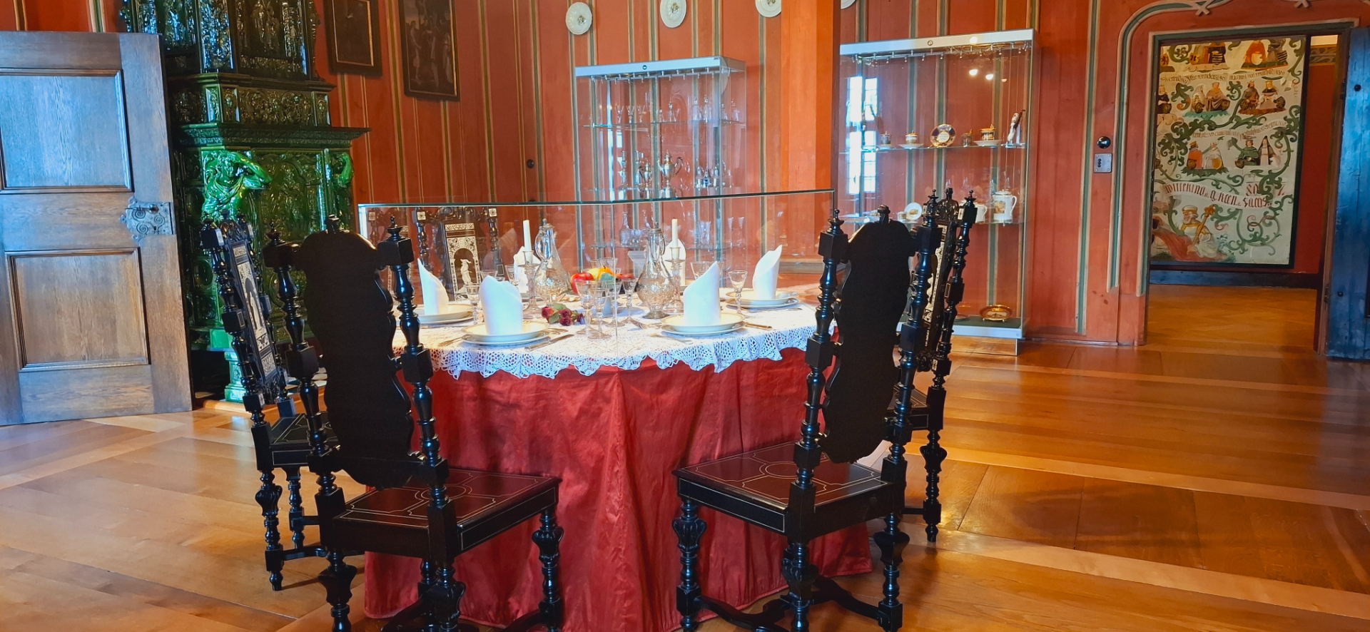 В некоторых комнатах стоят массивные старинные сундуки, больше на низкие комоды похожие. Вся знать во главе династии ветви Эрнестинской линии древней саксонской династии Веттинов постоянно переезжала из крепости в другие замки. Чтобы подданые регулярно их видели, и всегда чувствовали: «на то и щука в море, чтобы карась не дремал». дворы знати часто переезжали. Причём вместе с дорогими настенными панелями, стульями и кроватями, которые можно было разобрать, и даже переносными алтарями. То есть каждый новый замок мог быть очень быстро украшен и подготовлен к приезду своего владельца. А всё мелкое имущество – одежду, посуду, ценные вещи обихода – всё это перевозили в сундуках. Так что в Средние века они были распространены гораздо больше, чем шкафы.