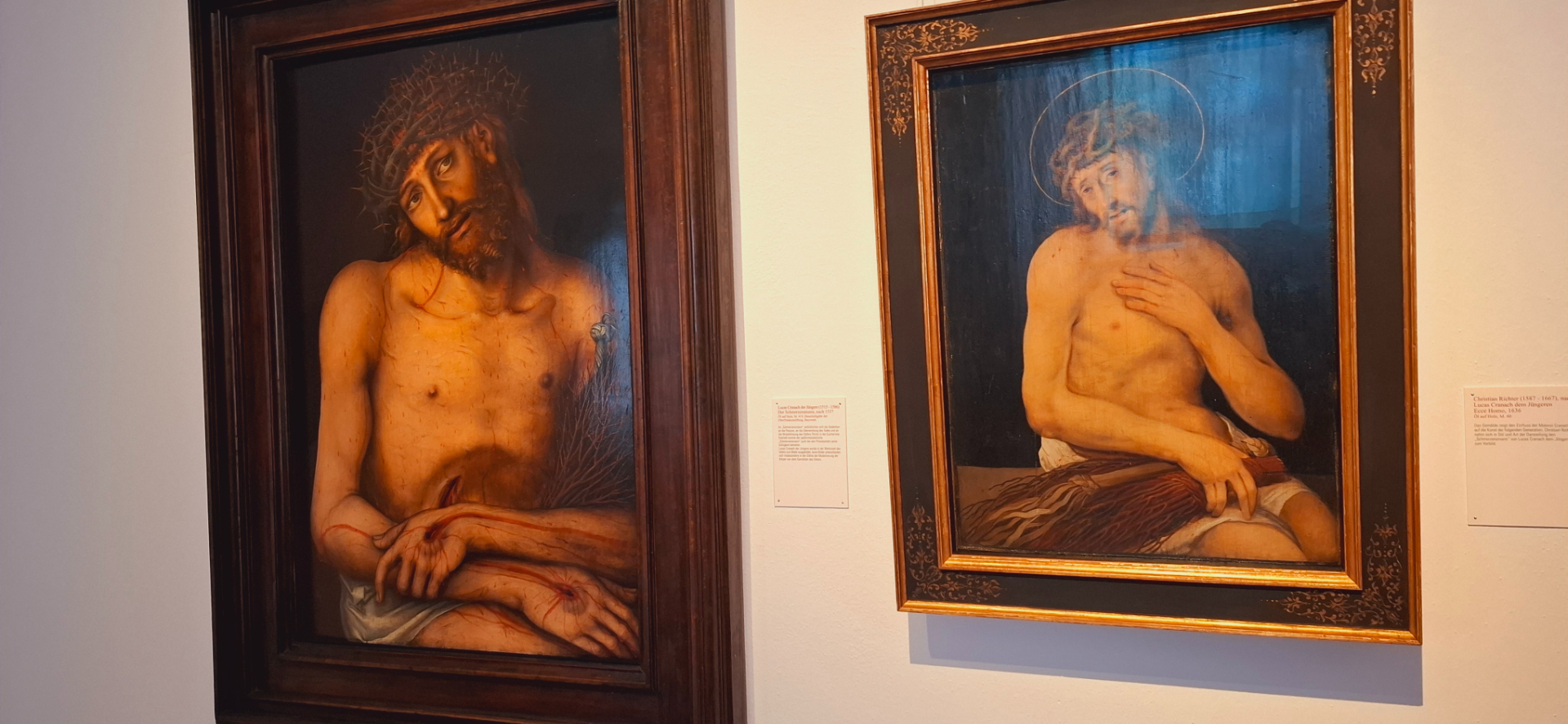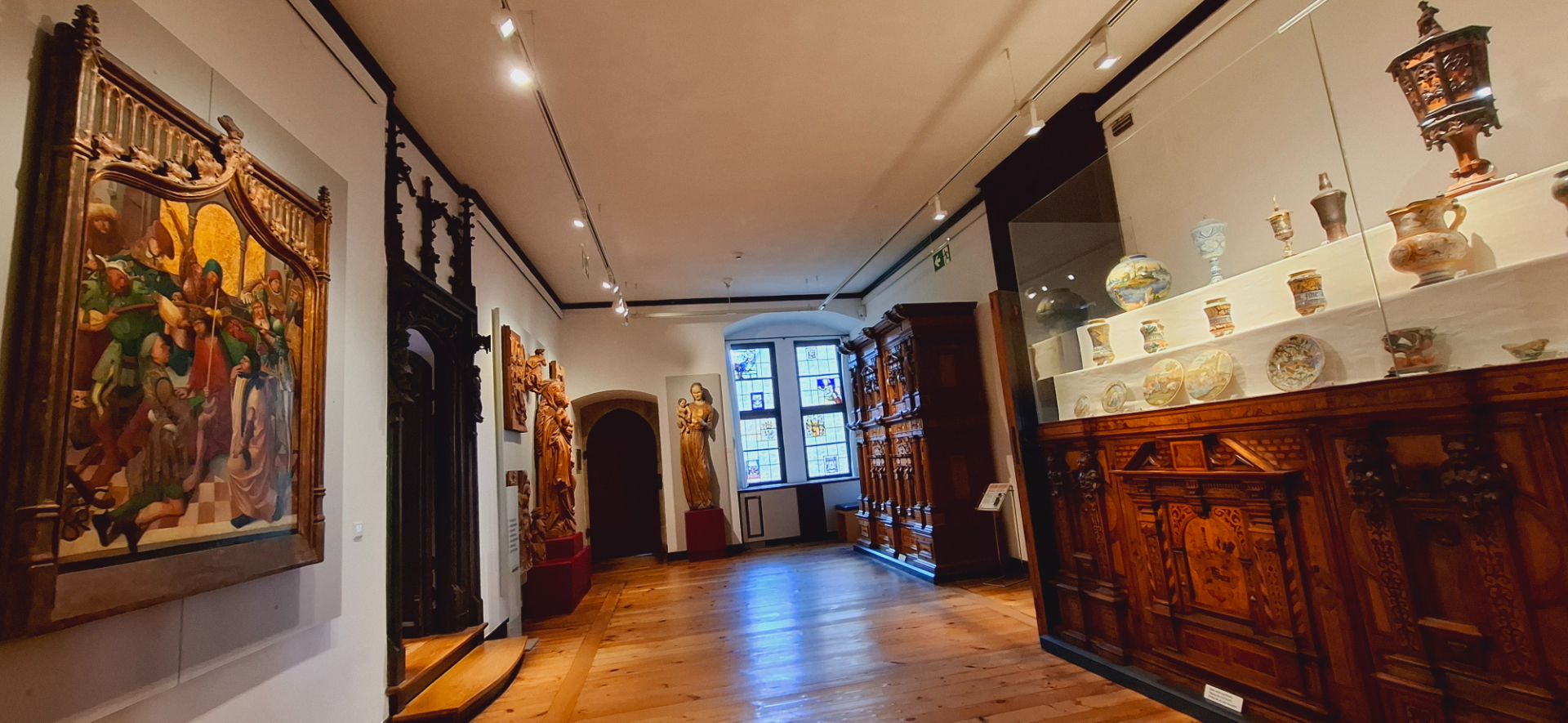 По деревянным еще в этом здании лестницам, от залов к другим помещениям, вышла к художественной галерее. На стенах подлинники работ - Кранаха, Дюрера, Грюневальда, Гольбейна, Мартина Шонгауэра, Альбрехта Альтдорфера, и других старых немецких мастеров. Художник эпохи Возрождения - Лукаса Кранаха Старший, был приглашён в замок в качестве придворного художника. От сияния ликов сердце ликует!