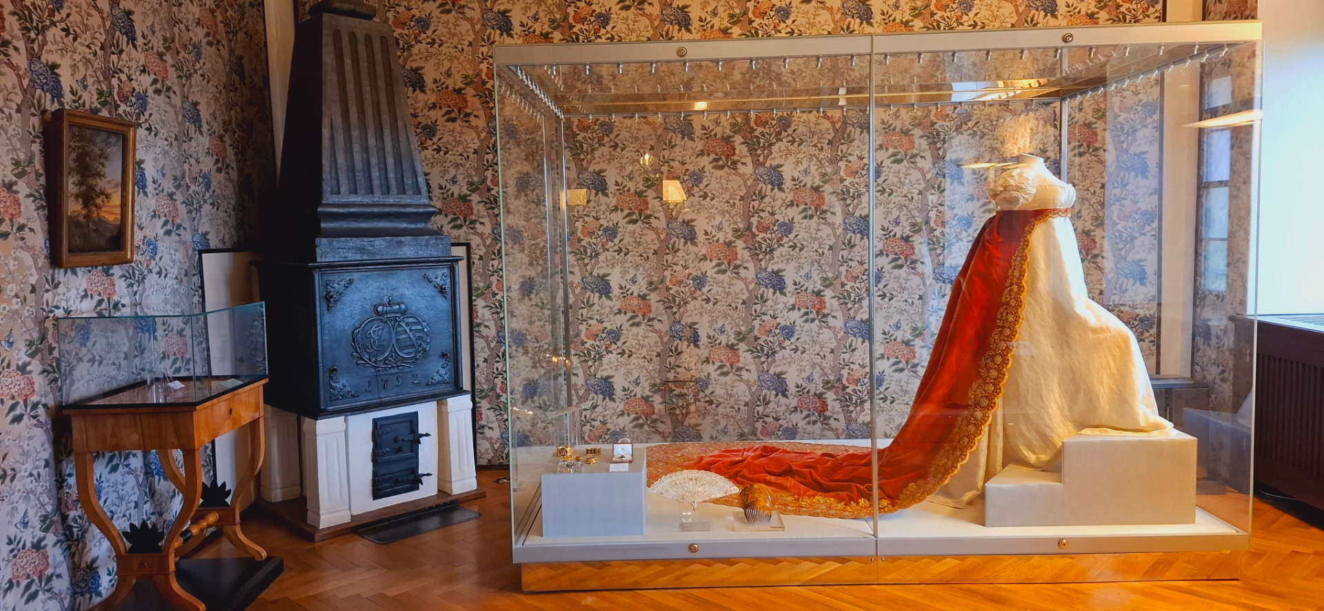 Карет всего четыре в музейной экспозиции, и это кареты с историей. Две богато позолоченные свадебные кареты16 века в музее являются уникальными, эти одни из самых ранних, полностью сохранившихся европейских карет эпохи Возрождения. Транспортные средства в то время, не только «средство передвижения» и не просто символ богатства, но и связаны с властью и статусом. Два полностью сохранившихся брачных (свадебных) вагона эпохи Ренессанса, очень редкие артефакты. На крыше кареты золотые сердечные мотивы, символизирующие любовь молодожёнов, однако их история оказалась не слишком счастливой: говорится, что уже через несколько лет их брак распался.