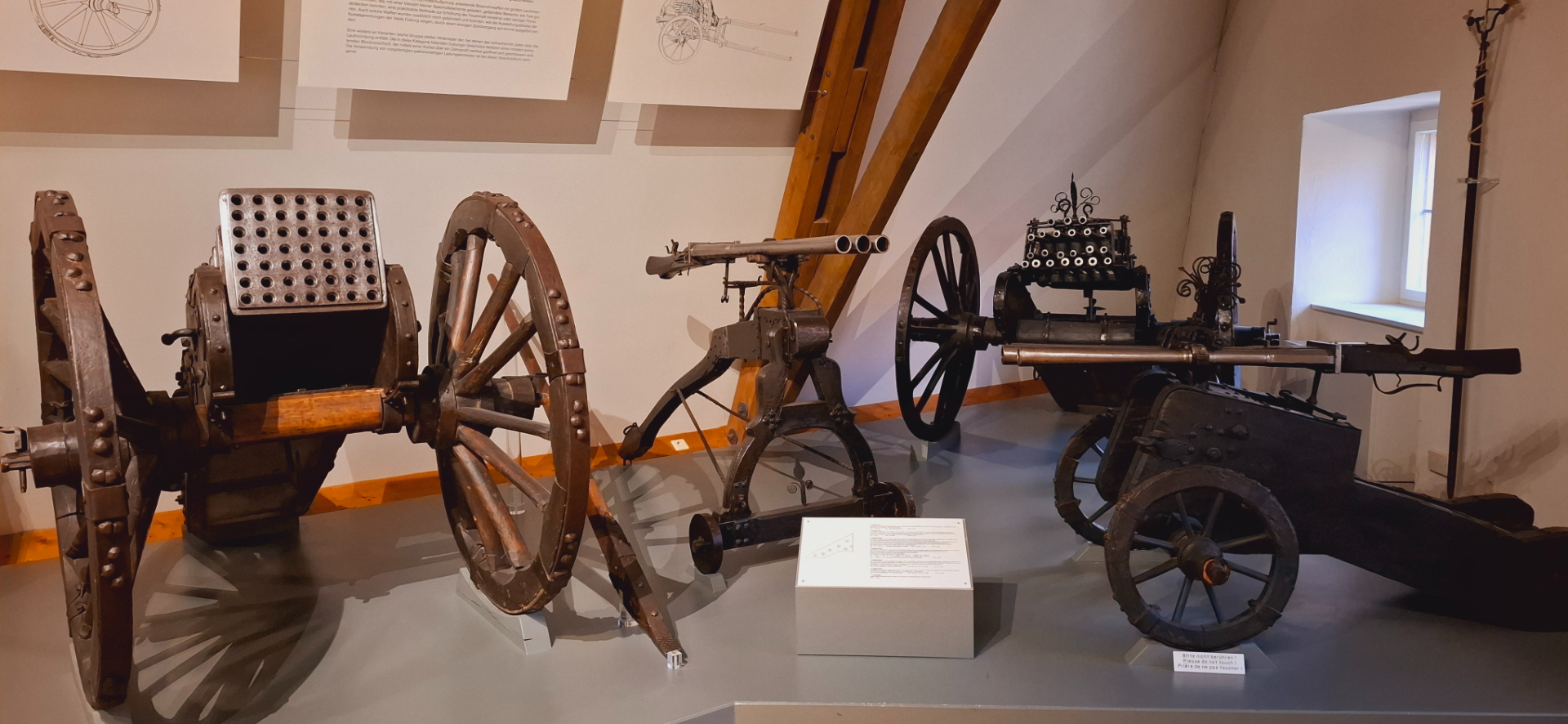 Трехдульные мушкетоны (тромблоны) для стрельбы картечью или просто рубленым свинцом. И на заднем плане - 22-хствольное ружье.