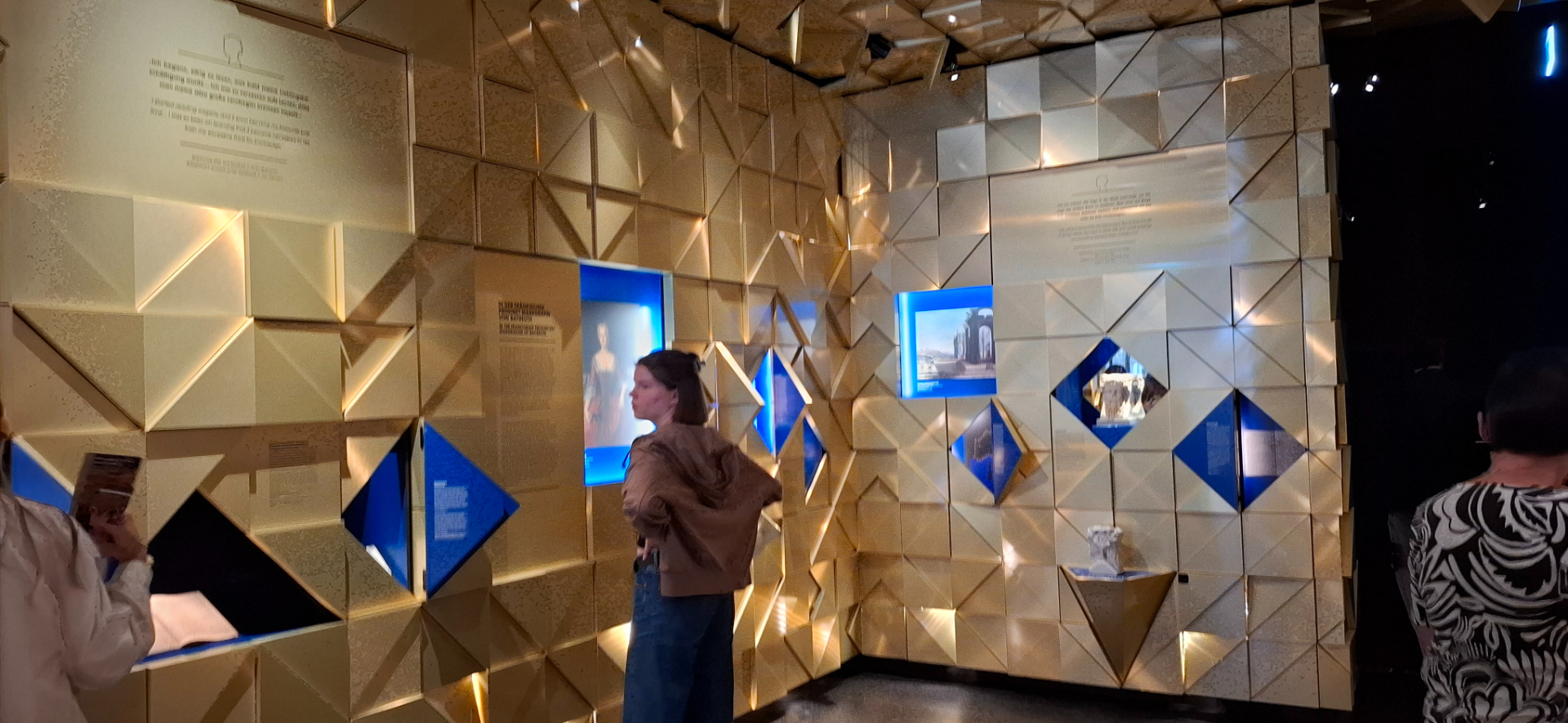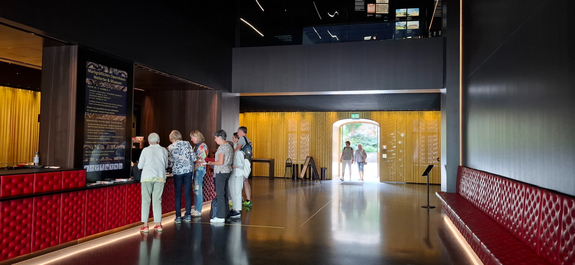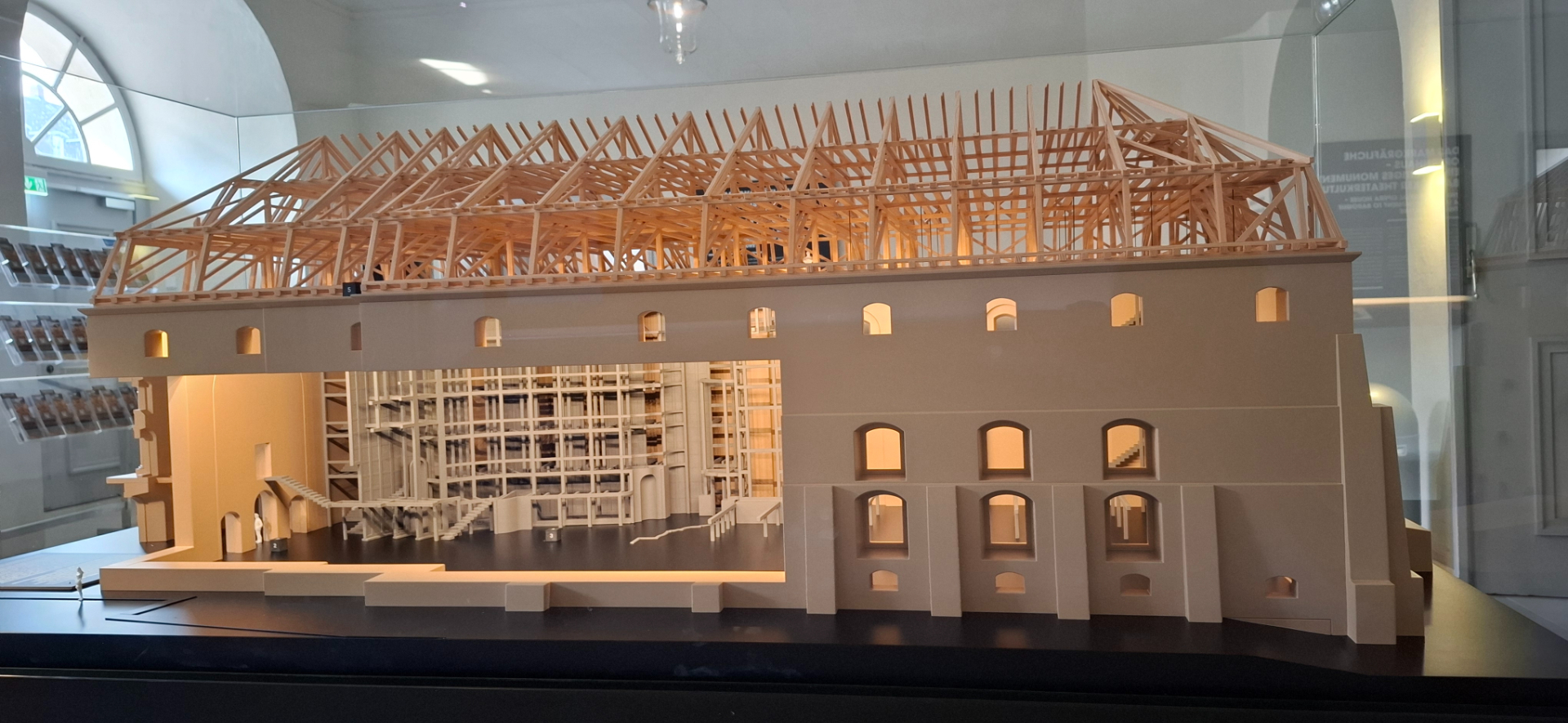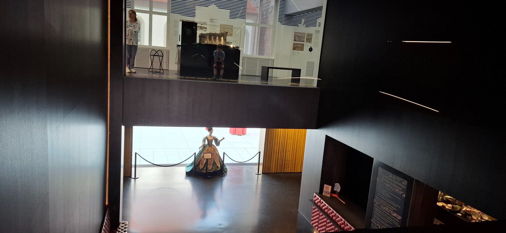 Так как и сам театральный зал теперь музей, куда пускают туристов по билетам (10 евро -2025 год), потому наличие еще дополнительного «театрального» музея, входящего в маршрут, логично. Выставочные залы находятся в здании над кассами. И сразу с вестибюля есть «окошко» на второй этаж музей. Потом при обходе музея в это окошко забавно выглядывать на публику внизу.
