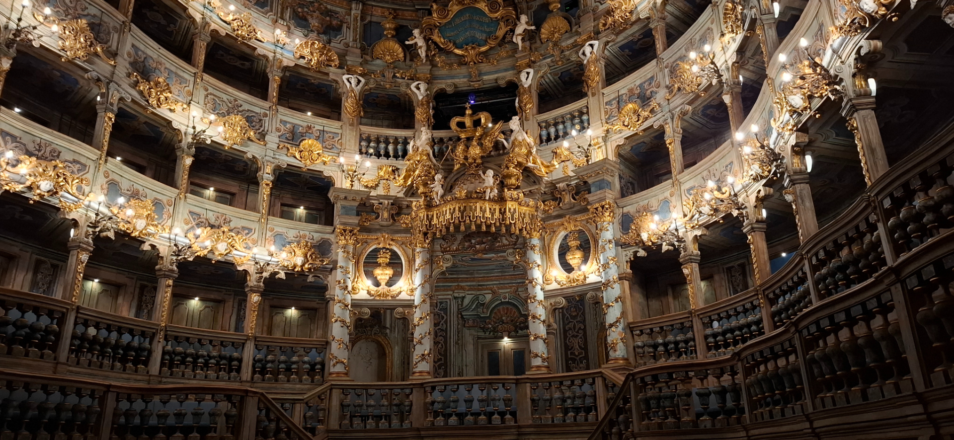 Три яруса над партером соответствуют трем слоям тогдашнего общества. Примечательно, что, несмотря на пышное оформление княжеской ложи, маркграфы почти никогда там не сидели. Маркграфиня предпочитала наблюдать за действом на сцене из трона в первом ряду партера. Партер, между прочим, тоже не всегда был частью зрительского зала. Часто актеры танцевали прямо в партере, а зрители наблюдали за происходящим со своих мест в ложах.