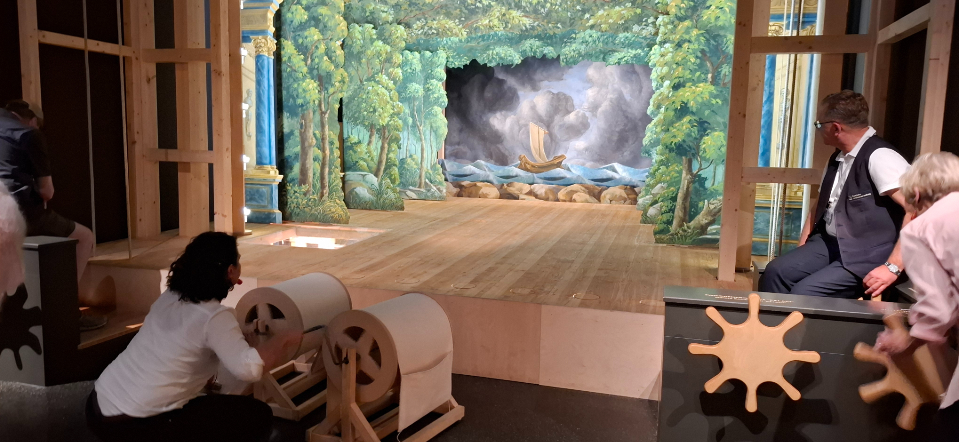 У детей и не только, вызывает восторг зал, в котором построена своя сцена и сотрудники музея приглашают их самих менять декорации, крутить устройство, что вздымает волны на сцене. Так же вызывать гром и молнии. Детвора и взрослые наперегонки занимаются созданием шумовых и визуальных картинок на сцене.